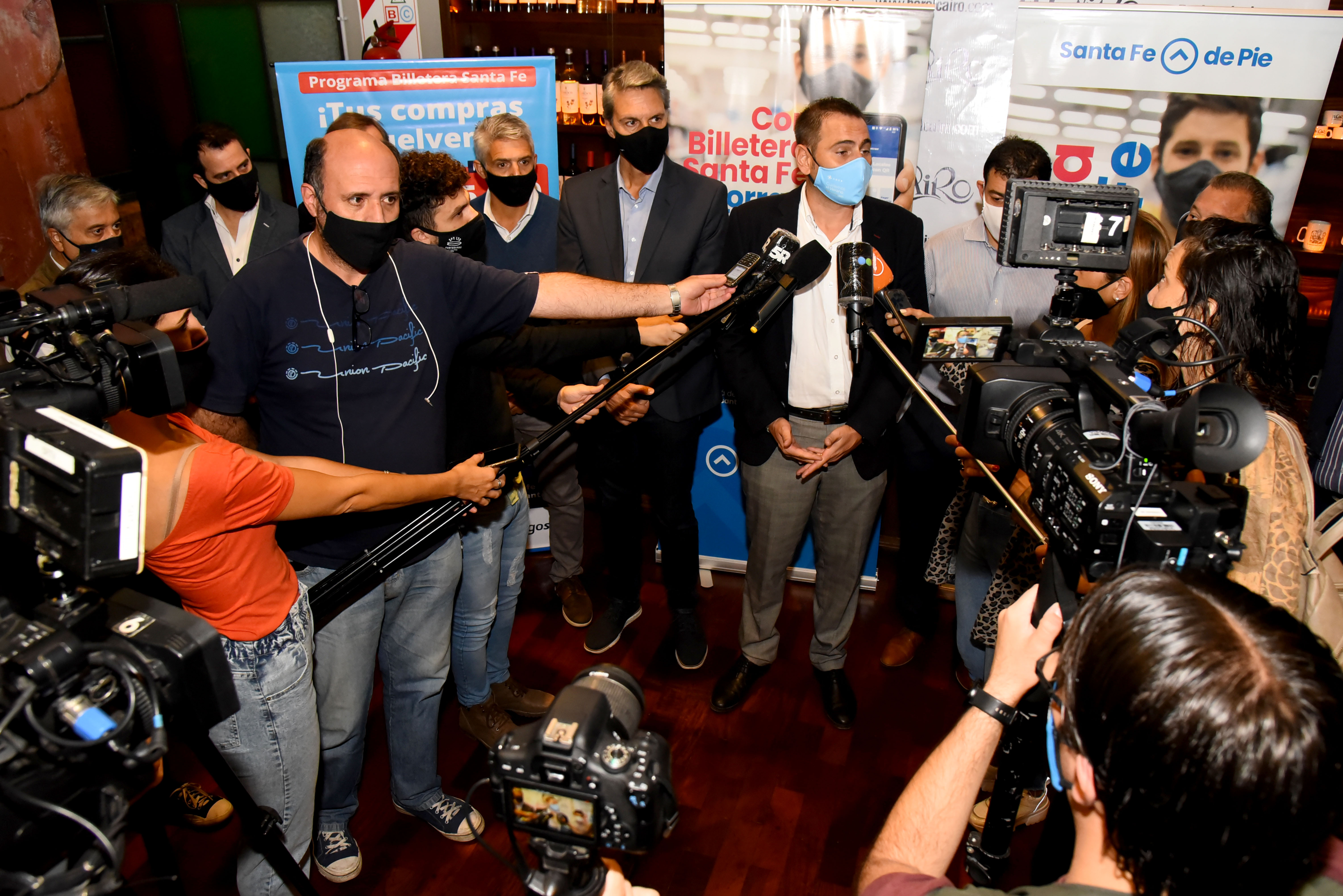 Los secretarios de Comercio Interior y Servicios, Juan Marcos Aviano, y de Turismo, Alejandro Grandinetti, brindaron precisiones sobre la ampliación, a todos los días de la semana, del programa Billetera Santa Fe en los rubros de turismo y gastronomía, durante un desayuno de trabajo que tuvo lugar en el bar El Cairo de Rosario este viernes.