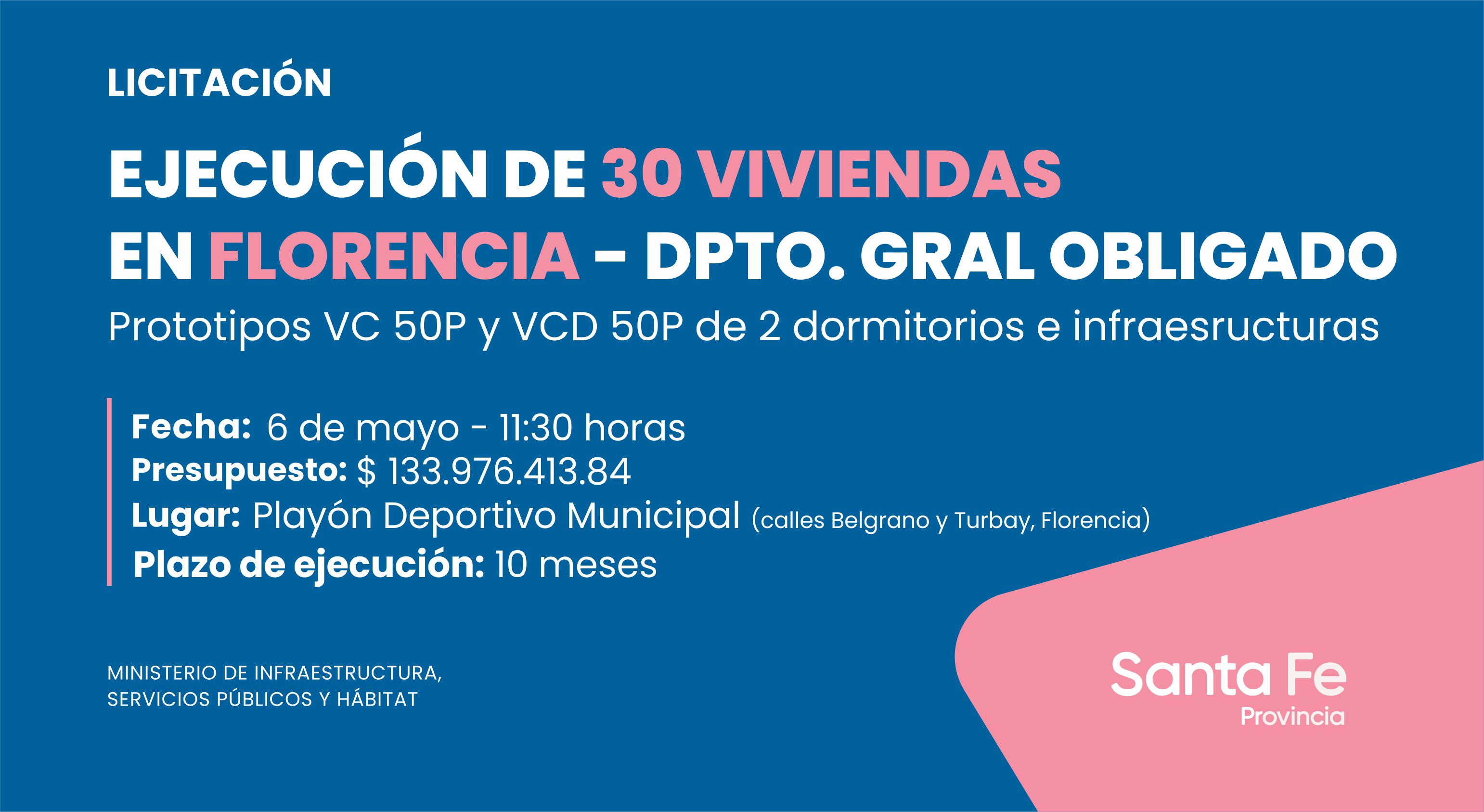 El acto licitatorio se desarrollará el jueves 6 de mayo, a las 11:30 horas, en el Playón Deportivo Municipal en calle Belgrano y Turbay - Florencia.
