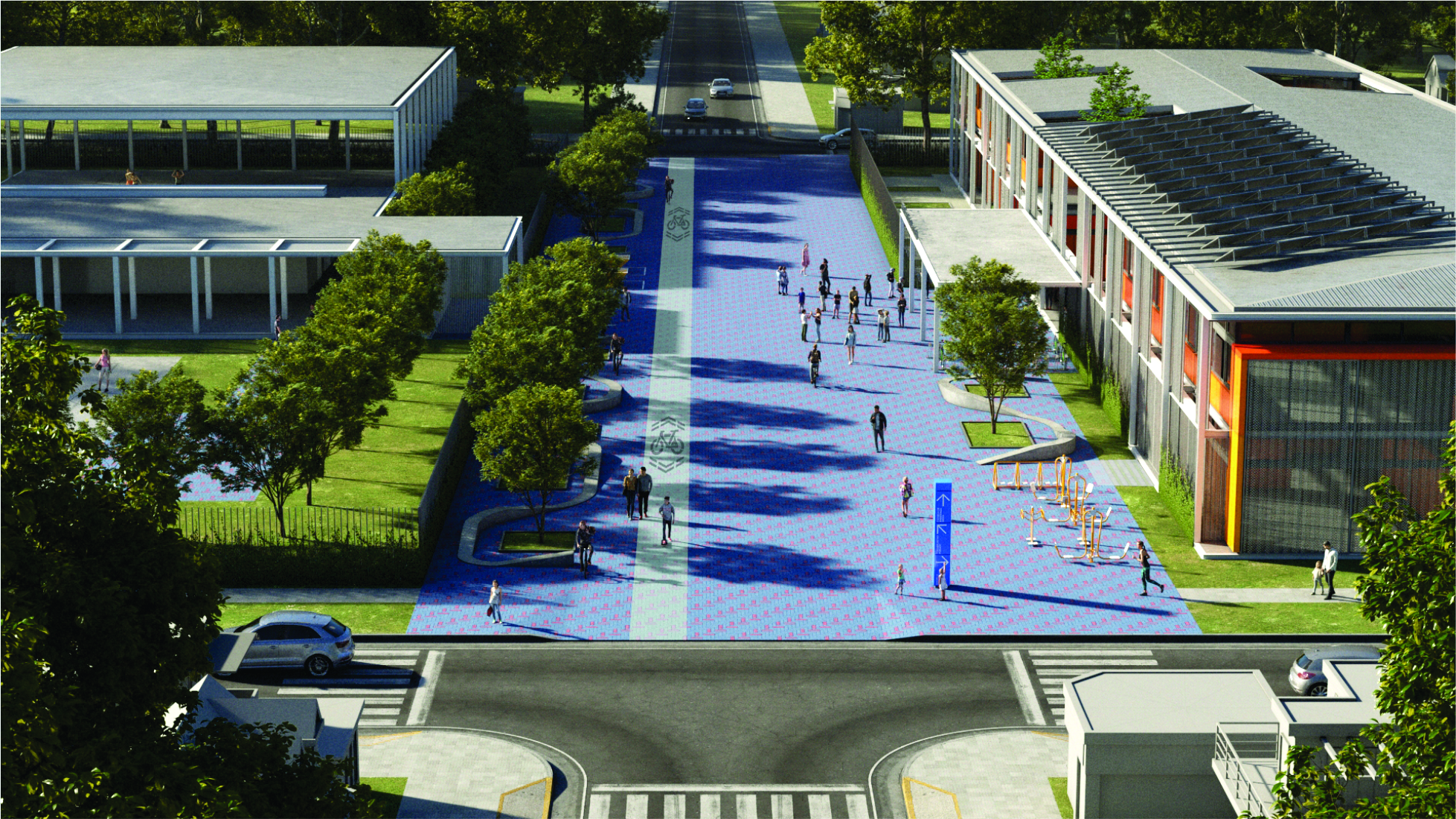 Además, se instalarán en la cubierta del edificio 40 paneles solares fotovoltaicos que aportarán gran parte de la energía eléctrica necesaria para el funcionamiento de la escuela y además, inyectarán energía a la red cuando haya excedente. La climatización de las aulas se resuelve a través de piso radiante, que es el sistema de mayor eficiencia y confort.