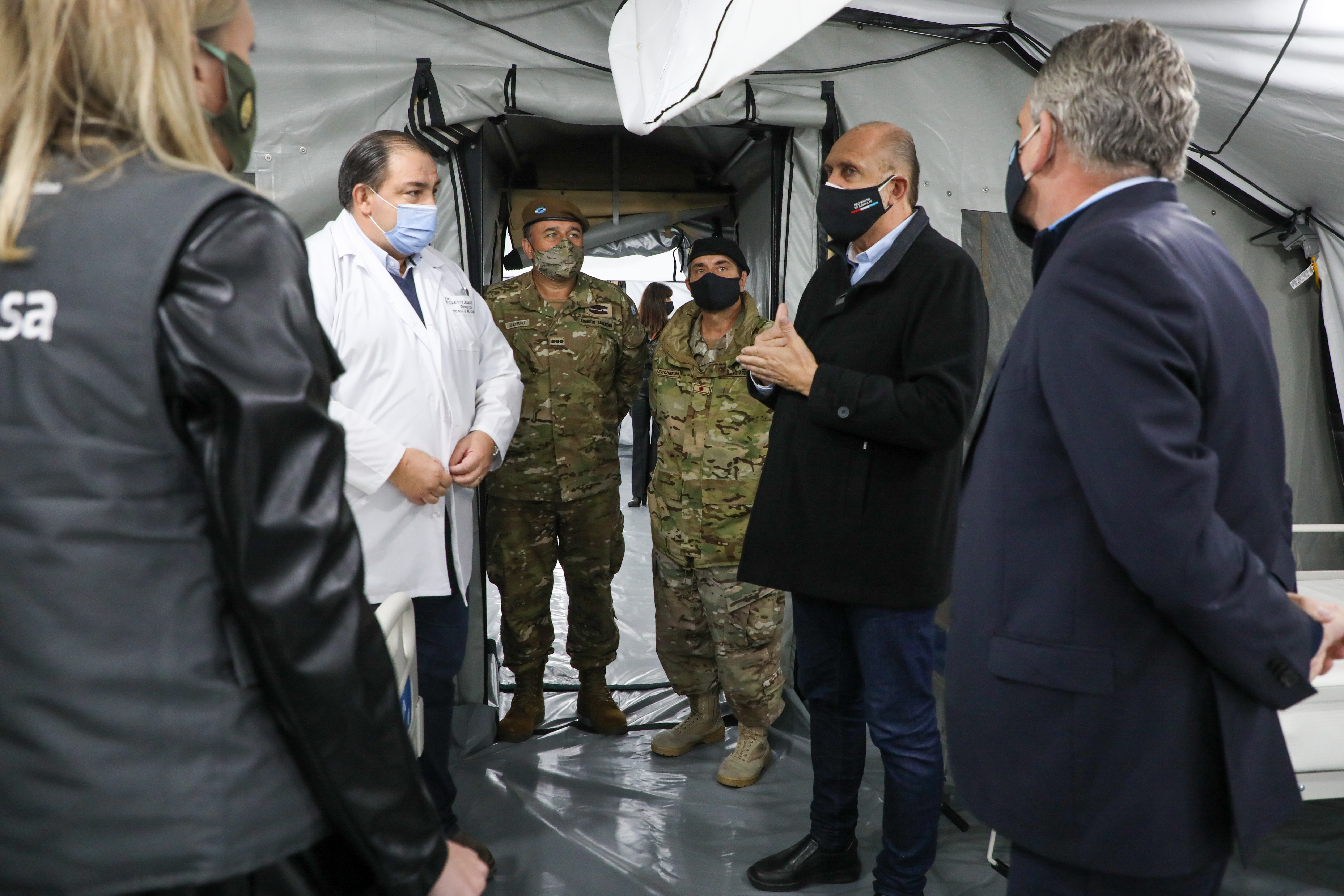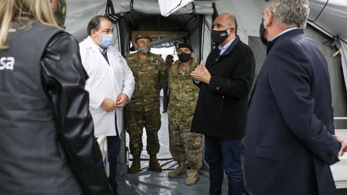 El gobernador Omar Perotti visitó este martes junto al ministro de Defensa de Nación, Agustín Rossi, las instalaciones del Hospital Militar instalado en el predio del Liceo Militar General Belgrano de la ciudad de Santa Fe, frente al Hospital José María Cullen.
