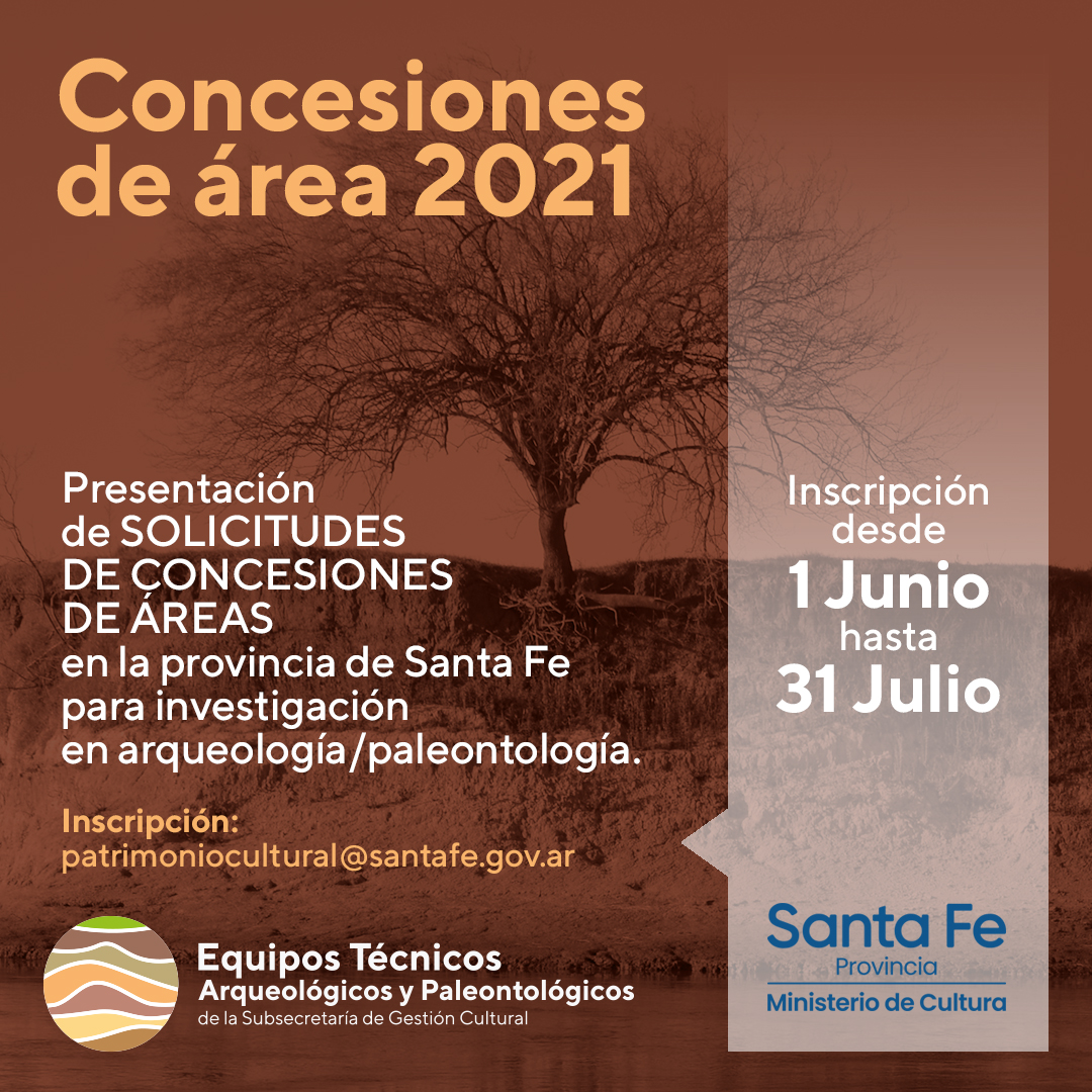 El Ministerio de Cultura de Santa Fe comunicó que entre el 1º de junio y el 31 de julio de 2021 se recibirán las solicitudes de concesión de área para llevar a cabo exploraciones arqueológicas y/o paleontológicas en el territorio santafesino.