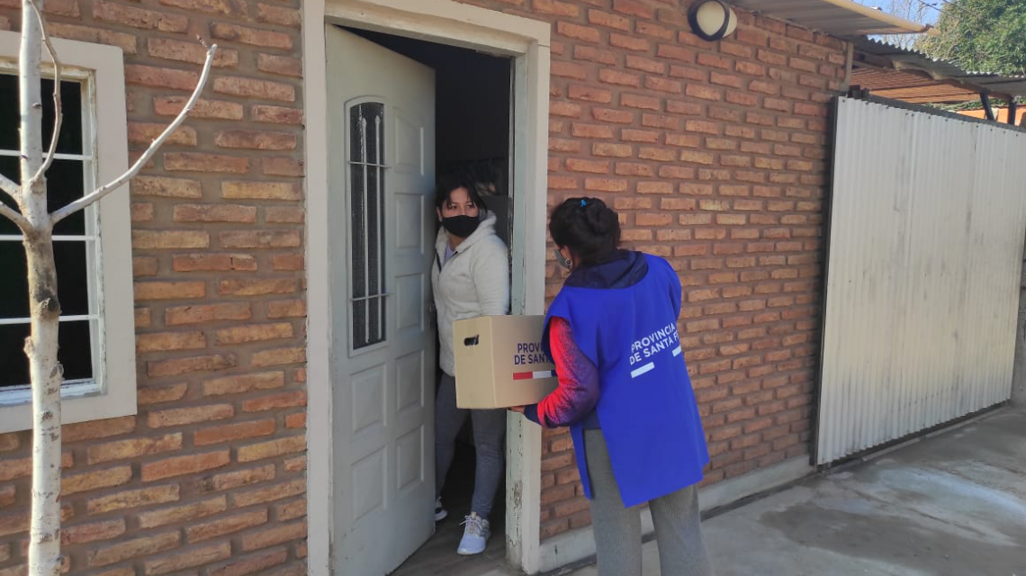 Los operativos de entrega de módulos alimentarios, también se llevan adelante en los barrios de la ciudad de Santa Fe.