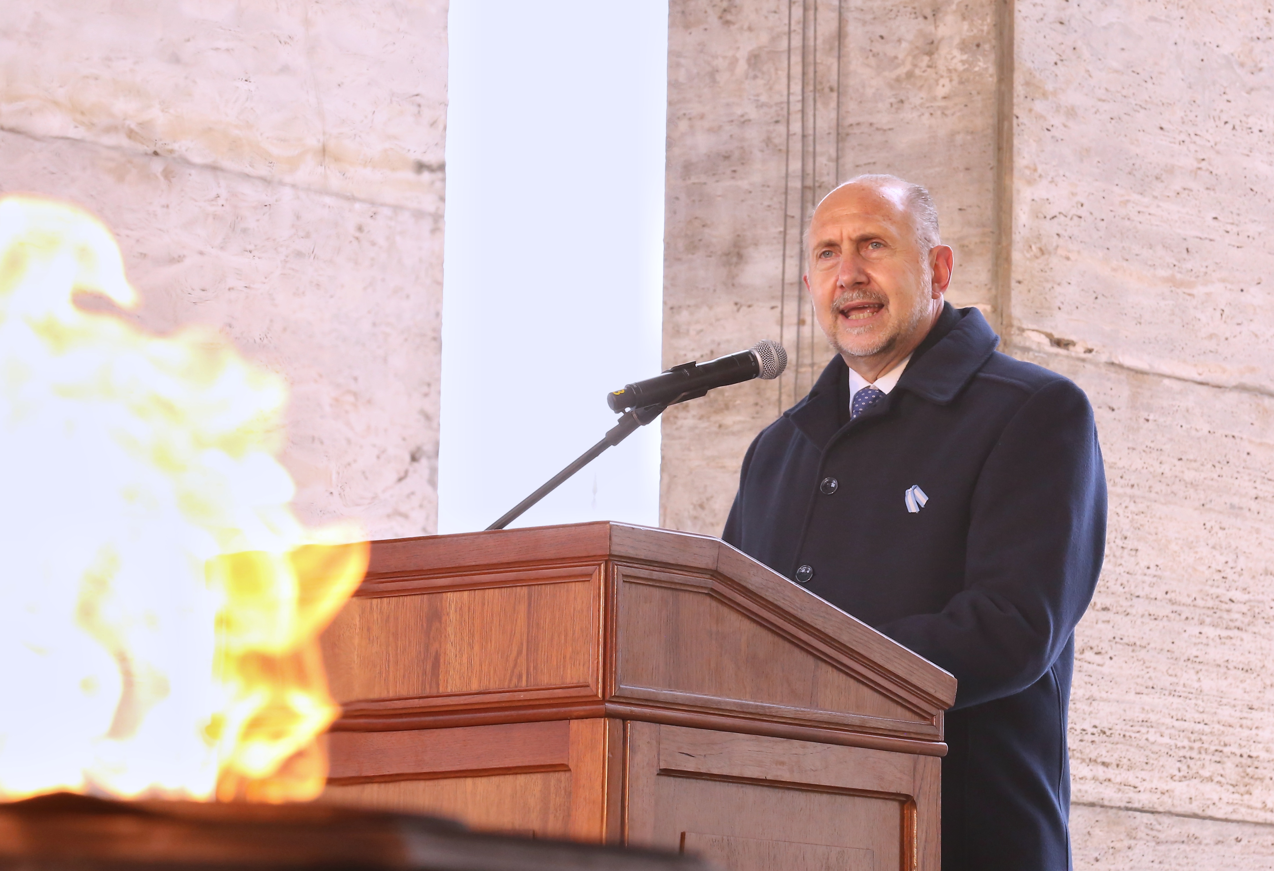Perotti recordó una frase de Belgrano, que dice: “«Es preciso en este tiempo hacer cosas extraordinarias y sacrificarlo todo por la salud de la Patria»”, para luego agregar que hoy Argentina se enfrenta a un “ejército enemigo” que es el virus.