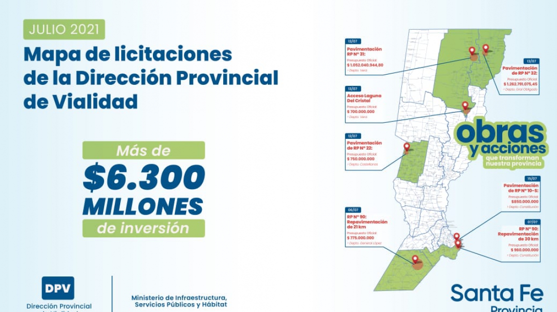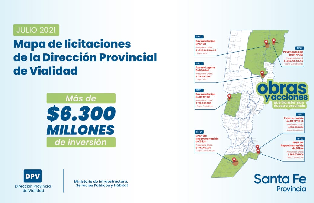 Los trabajos corresponden a siete obras que se llevarán a cabo en los departamentos Castellanos, General López, Constitución, Vera y General Obligado. Todas las licitaciones comprenden presupuestos oficiales de más de 700 millones de pesos y llegan a superar los 1.260 millones, con un plazo de ejecución de 10 a 15 meses.