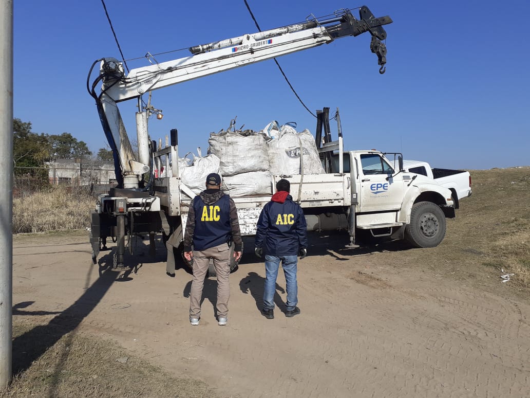 En el marco de una investigación a cargo de la Fiscal Cleila Grosero, el personal secuestró tres millones setecientos mil pesos en efectivo, una maquina de contar billetes, una camioneta vw amarok, un camión de carga, más de cuatro toneladas de diferentes cables pertenecientes a la Epe, Telecom, Municipalidad, medidores de aguas provinciales, adornos y herrajes del cementerio, dos balanzas electrónicas para pesar metales pesados, una balanza electrónica tipo báscula de gran tamaño, una zorra manual de carga, un zampi diesel de carga, diferentes tipos de herramientas de trabajo, telefonía celular, y documentación de interés para la investigación.