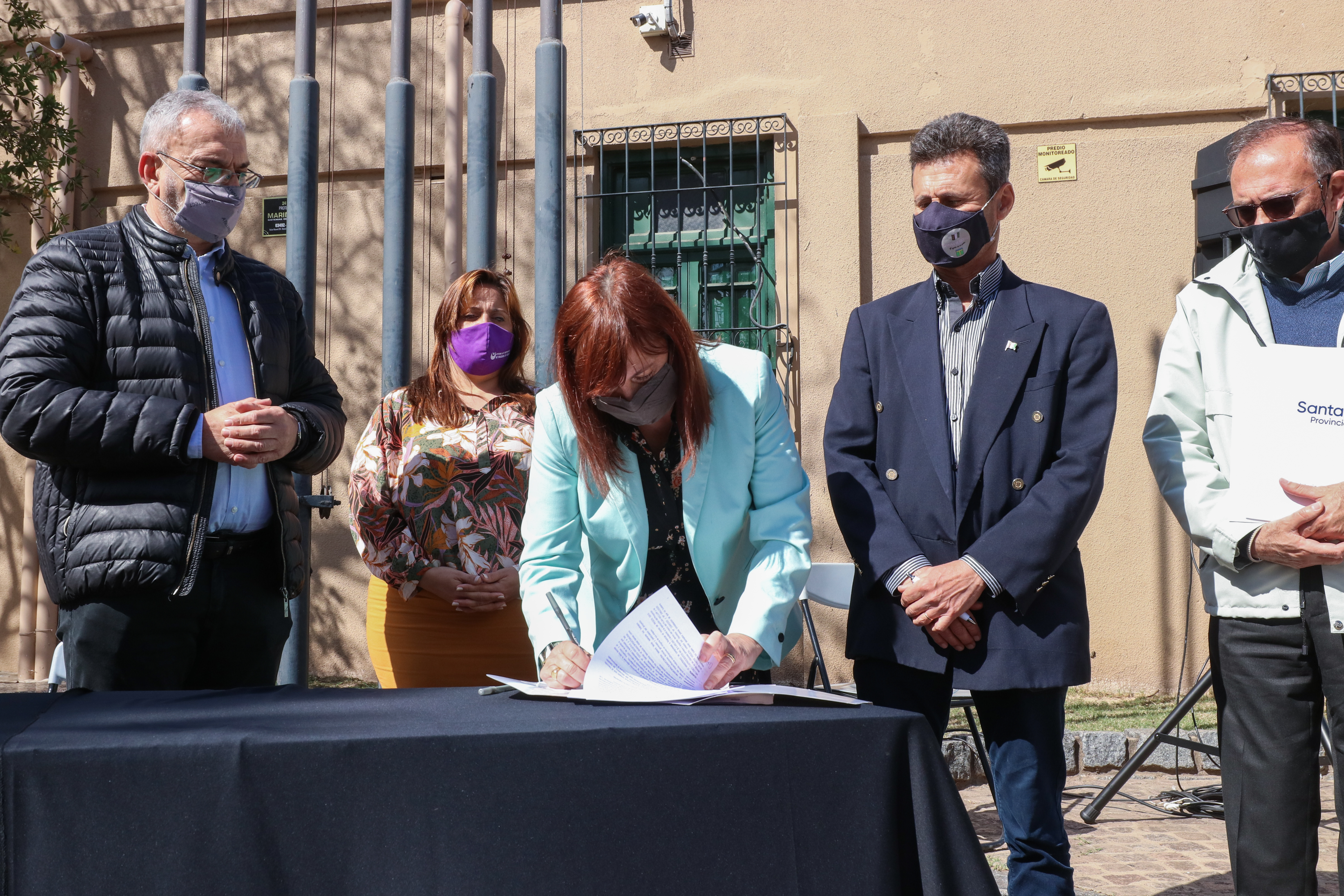 La firma tuvo lugar en la Plazoleta Centenario de la mencionada ciudad, junto al senador departamental Alcides Calvo y Myriam Villafañe, secretaria de Desarrollo Humano de la ciudad anfitriona. Firmaron presidentes y presidentas comunales e intendentes e intendentas de las localidades del departamento que presentaron proyectos institucionales para llevar adelante políticas de género y diversidad sexual: Angélica, Bella Italia, Colonia Raquel, Esmeralda, Estación Clucellas, Frontera, Galisteo, Humberto Primo, Josefina, María Juana, Plaza Clucellas, San Vicente, Santa Clara de Saguier, Sunchales, Zenon Pereyra. Además, dentro del trabajo articulado entre los gobiernos provincial, nacional y locales, se firmaron convenios para la creación de Puntos Violetas, con las localidades de Tacural y María Teresa. Cabe destacar que el intendente de Rafaela, Luis Castellano, ya había firmado los convenios en la ciudad de Santa Fe la semana pasada.