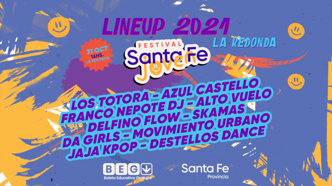 Del evento participarán artistas locales, habrá una feria de emprendedores, propuestas gastronómicas e intervenciones artísticas de distintos géneros y, además, estarán presentes diferentes áreas del Gobierno de la Provincia de Santa Fe para exponer y brindar información respecto a los diferentes programas o políticas destinadas a las y los jóvenes de todo el territorio santafesino.