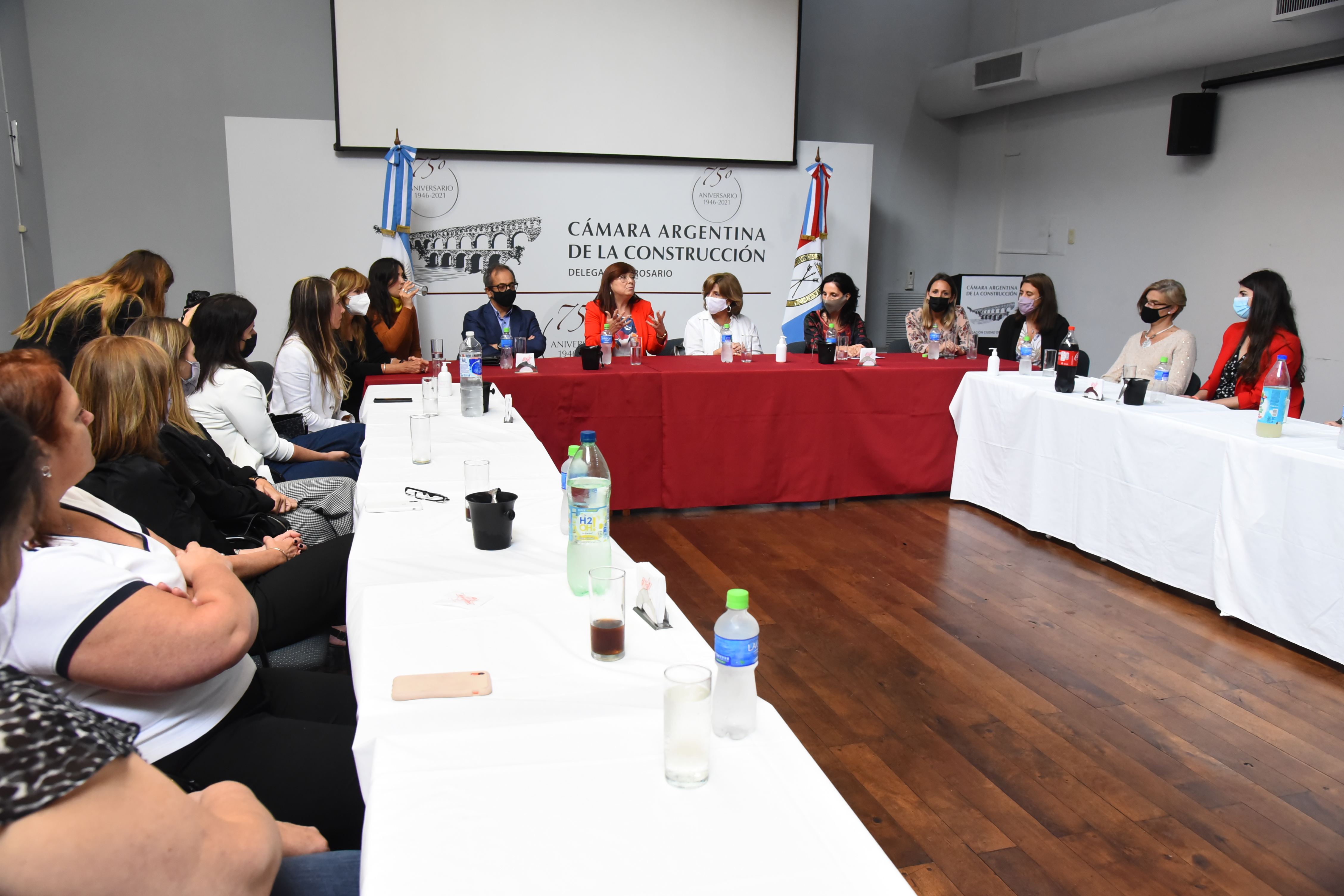 La actividad se realizó en la sede de la Cámara Argentina de la Construcción, donde se hicieron presentes las ministras, de Igualdad, Género y Diversidad, Celia Arena, y de Infraestructura, Servicios Públicos y Hábitat, Silvina Frana, junto a mujeres integrantes de la Cámara.