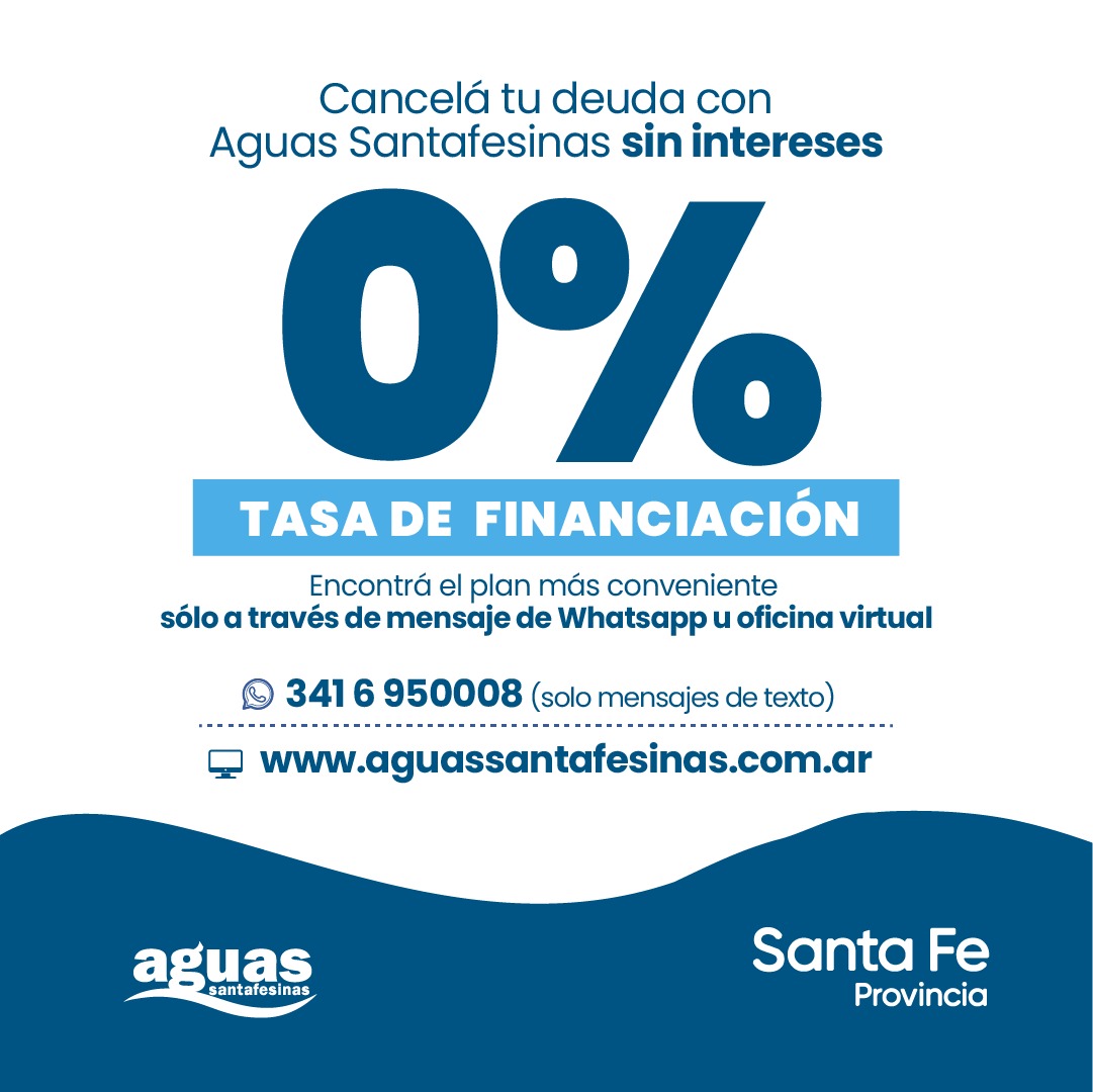 El plan solo puede gestionarse a través de los canales de atención virtuales: Whatsapp 341-6950008 y la oficina www.aguassantafesinas.com.ar/gestiones/