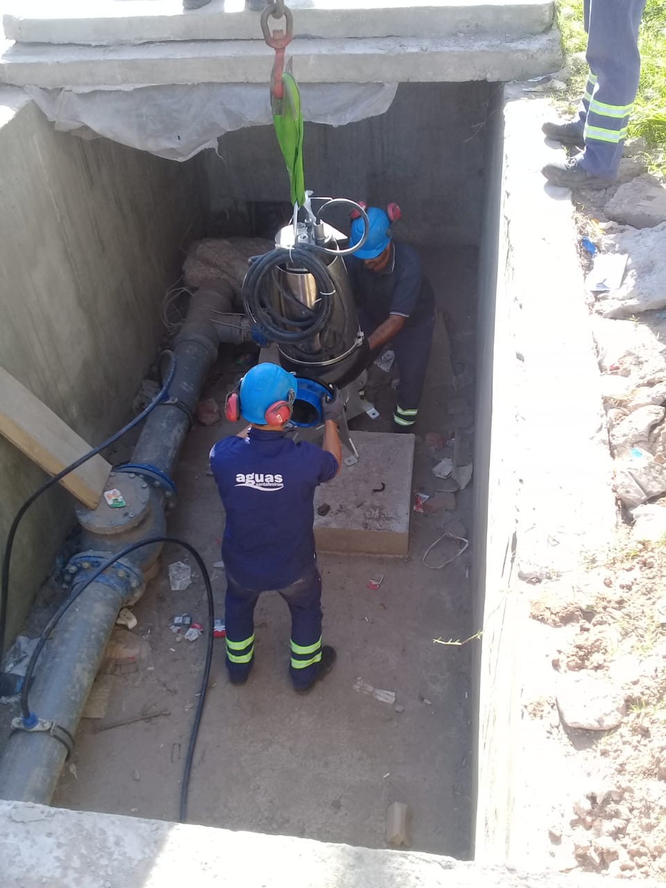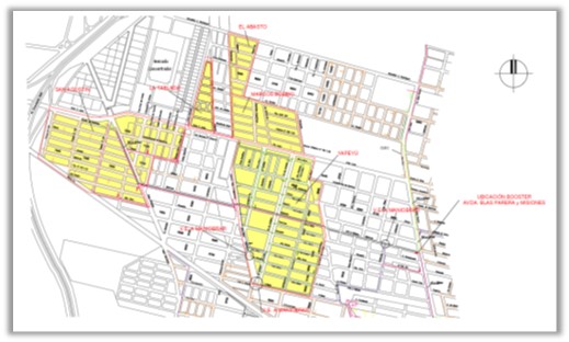 La obra comprendió la construcción de una cámara enterrada de hormigón armado para el alojamiento de la bomba de impulsión de gran caudal con válvula reguladora de presión, pieza especial para la vinculación con la cañería primaria sobre la que actuará la bomba y sus respectivas válvulas de seccionamiento, los sistemas de alimentación eléctrica y dispositivos electrónicos de automatismo y control remoto.
