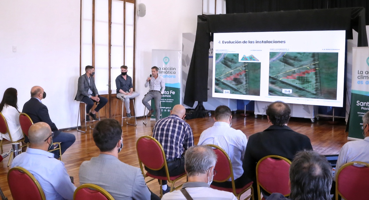Por otra parte, se llevó adelante la presentación del proyecto urbanístico privado de energía colaborativa para La Rinconada en Ibarlucea, el cual estará dirigido al abastecimiento del barrio. Por último, también se realizó la exposición del Proyecto Comunidad Solar en la ciudad de María Teresa, a cargo del Presidente Comunal Gonzalo Goyechea, el cual es financiado por el Ministerio de Innovación, Ciencia y Tecnología de la Nación e impulsado por la cooperativa eléctrica de María Teresa, la UTN Venado Tuerto y la Comuna de María Teresa.