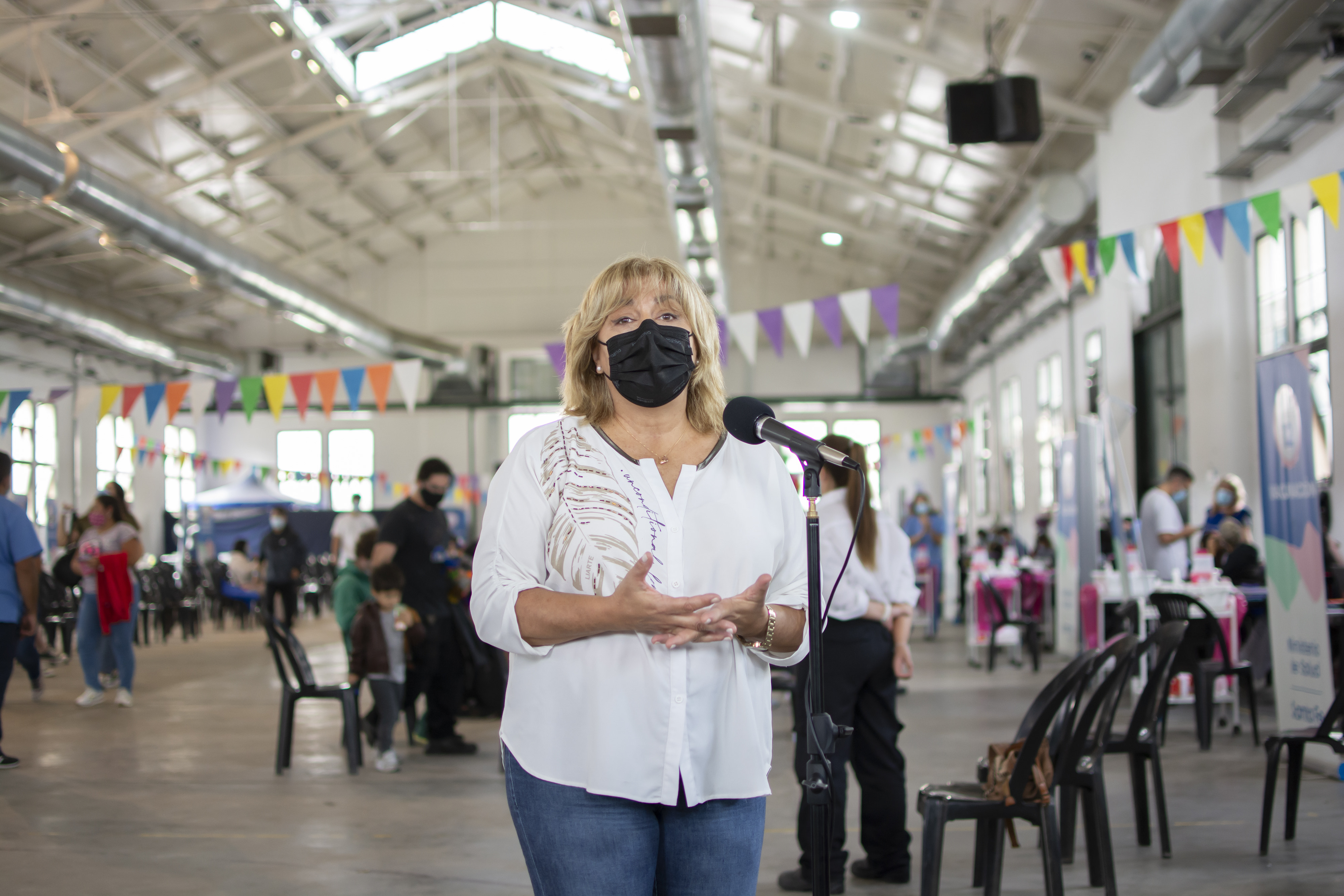 La funcionaria destacó que se cuenta con un “espacio amplio, luminoso, empático, para continuar con el proceso de vacunación. La capacidad operativa es mayor a la actual en La Rural”, expresó la ministra.