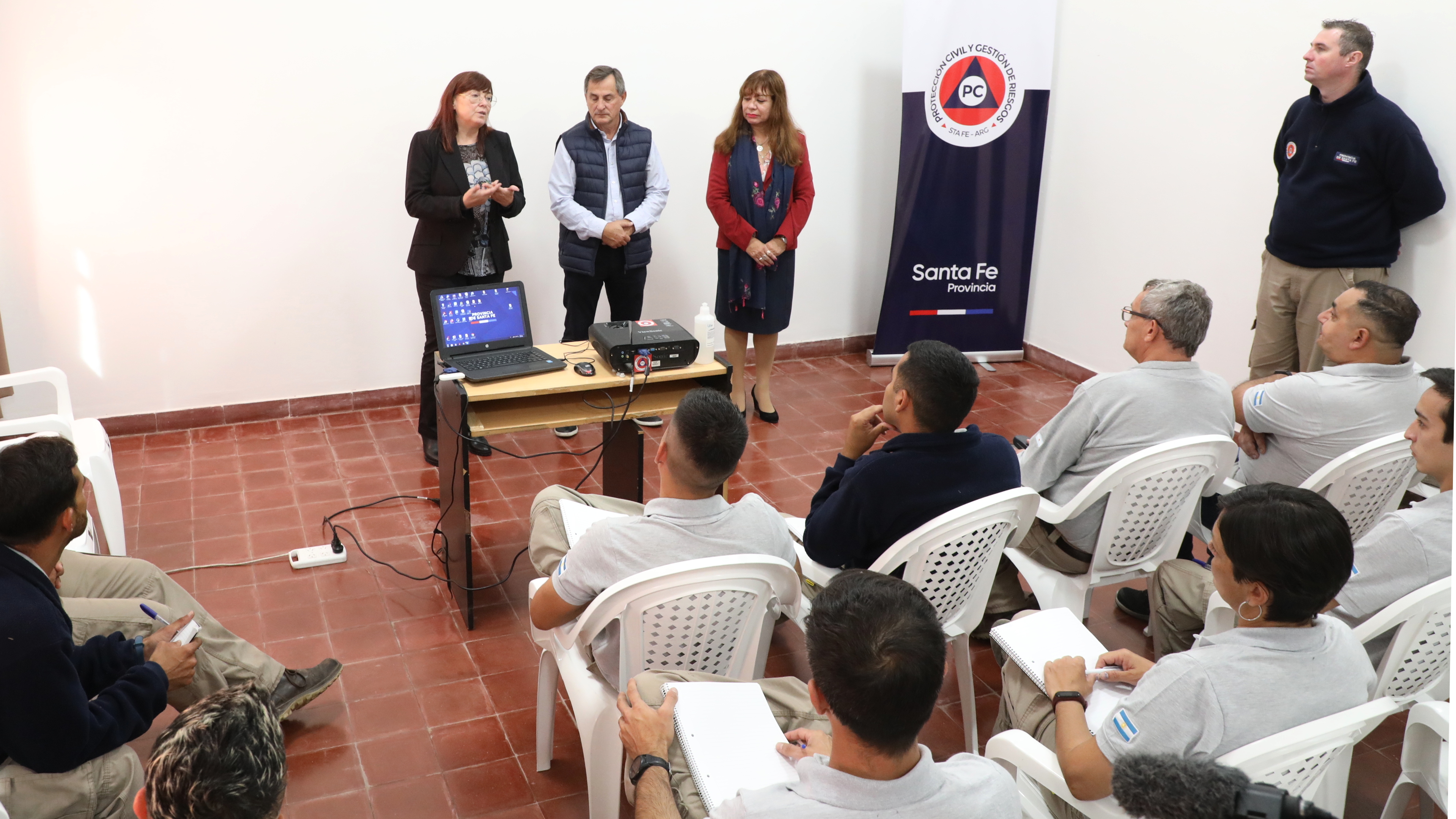 Posteriormente, comenzó el Curso de Formación de capacitadores en Gestión de Riesgos y Protección Civil a cargo de profesionales con reconocida trayectoria de la Subsecretaría de Gestión del Riesgo y Protección Civil de la Secretaría de Articulación Federal de la Seguridad del Ministerio de Seguridad de la Nación.