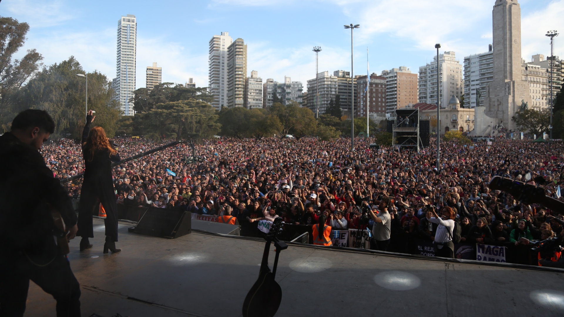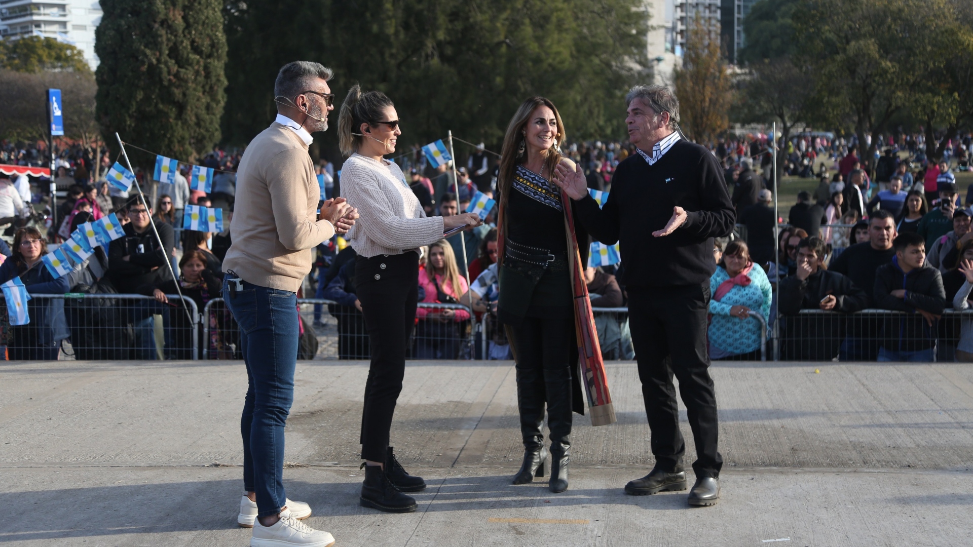 En tanto, en el otro escenario también había música. Con el Monumento a la Bandera de frente, y el río Paraná a sus espaldas, el escenario que se usó para la propuesta Santa Fe en tu corazón, fue nuevamente desplegado, esta vez para homenajear a la enseña patria y a su creador.