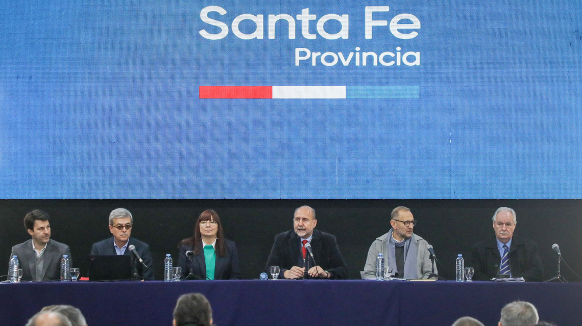 El mandatario santafesino sostuvo que “vamos a presentarles las características del acuerdo, la composición de los títulos porque, claramente ustedes son parte de lo que corresponde en el pago de esas acreencias y esos títulos, con los porcentajes que corresponden a la coparticipación de cada uno de los municipios y comunas de la provincia”.