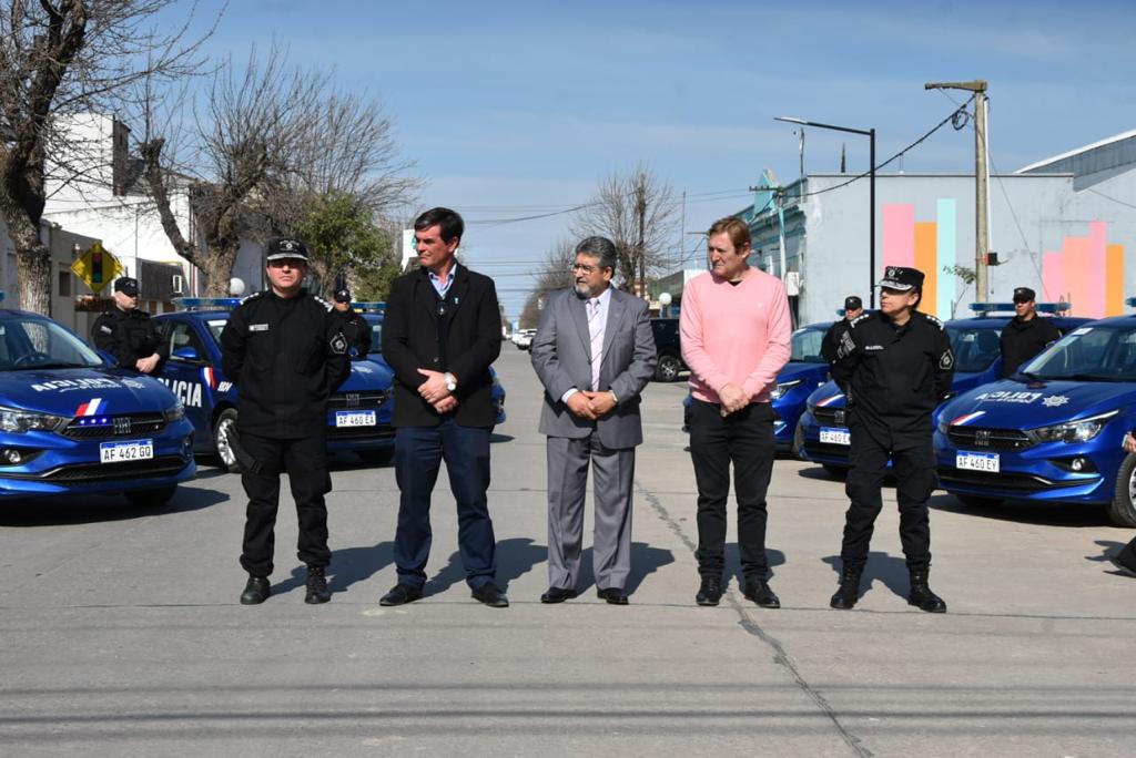 El subsecretario de Seguridad Local y Abordajes Territoriales, Horacio Córdoba Ríos, presidio el acto donde se hizo entrega de los 6 patrulleros a los intendente de Las Rosas, Javier Meyer; Armstrong, Pablo Verdecchia; y Las Parejas, Horacio Campagnucci; y a los presidentes comunales de Bouquet, Luis Echegaray; Montes de Oca, Emanuel Sagripanti; y Tortugas, Humberto Viozzi.