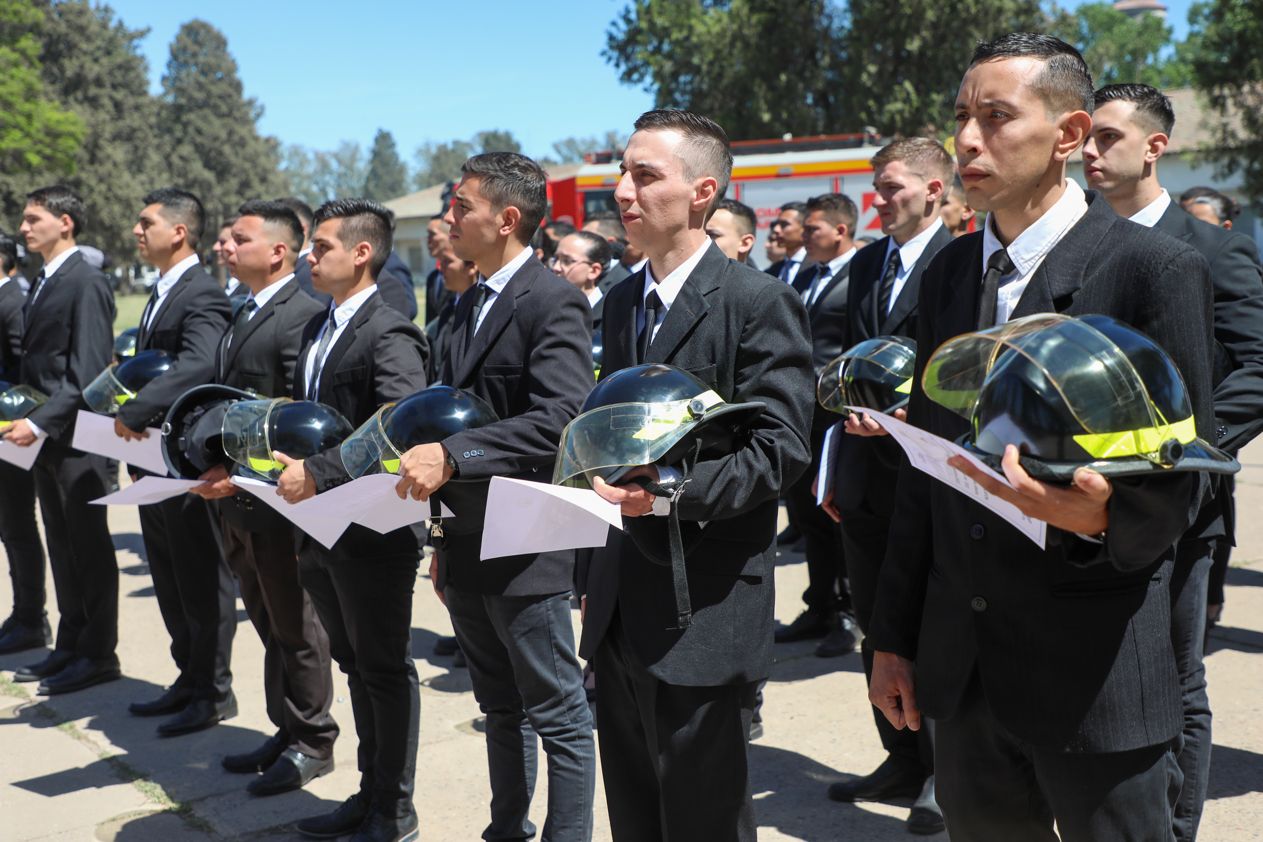 En la ceremonia estuvieron también presentes el subsecretario de Formación y Capacitación, Cristian Battaglino; el director del Instituto de Seguridad Pública, Ariel Sánchez; el jefe de policía de provincia, Miguel Ángel Oliva; y el director general de Bomberos, Andrés Lastorta.