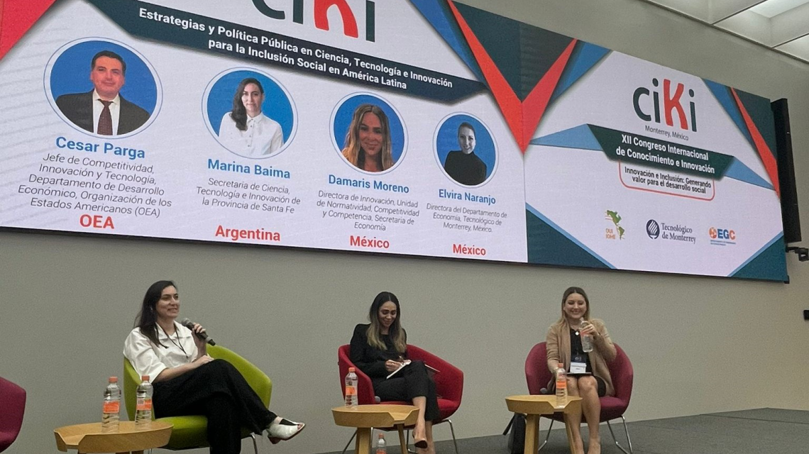 En la actividad, la secretaria de Ciencia, Tecnología e Innovación, Marina Baima, participó del panel “Estrategias y Políticas Públicas en CT+i para la Inclusión Social en Latam” junto a César Parga, representante de la Organización de los Estados Americanos; Elvira Naranjo del Departamento de Economía del Tecnológico de Monterrey; y la responsable del 1º fondo público-privado de México, Damaris Moreno de la Secretaría de Economía. Allí expuso las principales políticas públicas en materia de ciencia, tecnología e innovación que se implementan en Santa Fe y presentó el HUB Bio.