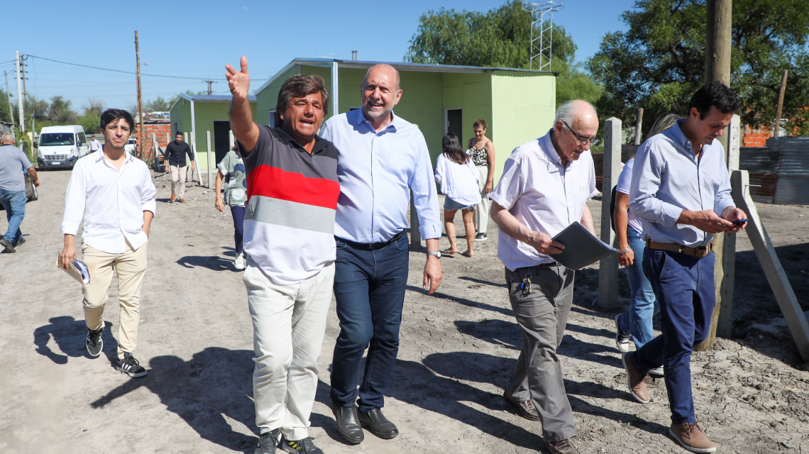El gobernador Omar Perotti recorrió este martes por la mañana el avance de las obras de construcción de viviendas que el gobierno de la provincia realiza en siete barrios de la capital santafesina en el marco del programa “No más ranchos en Santa Fe”, que se ejecuta a través del Ministerio de Infraestructura, Servicios Públicos y Hábitat, en coordinación con el Movimiento Los Sin Techo.