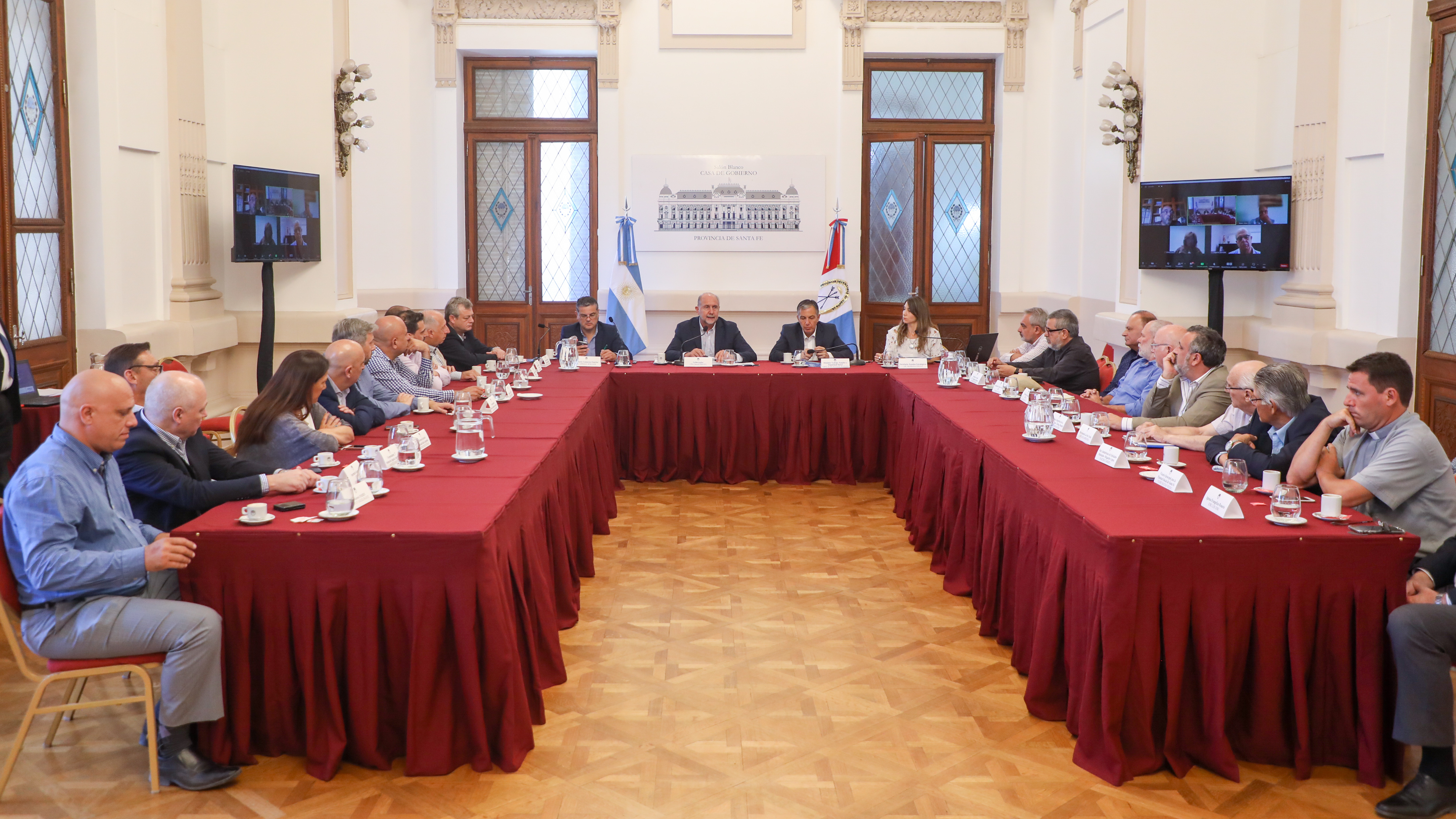 El gobernador Omar Perotti encabezó este viernes un nuevo encuentro de Consejo Económico y Social que se llevó a cabo en el Salón Blanco de la Casa de Gobierno de la ciudad de Santa Fe. En la misma participaron dirigentes de las instituciones más importantes de la provincia, del quehacer laboral, productivo, social y científico.
