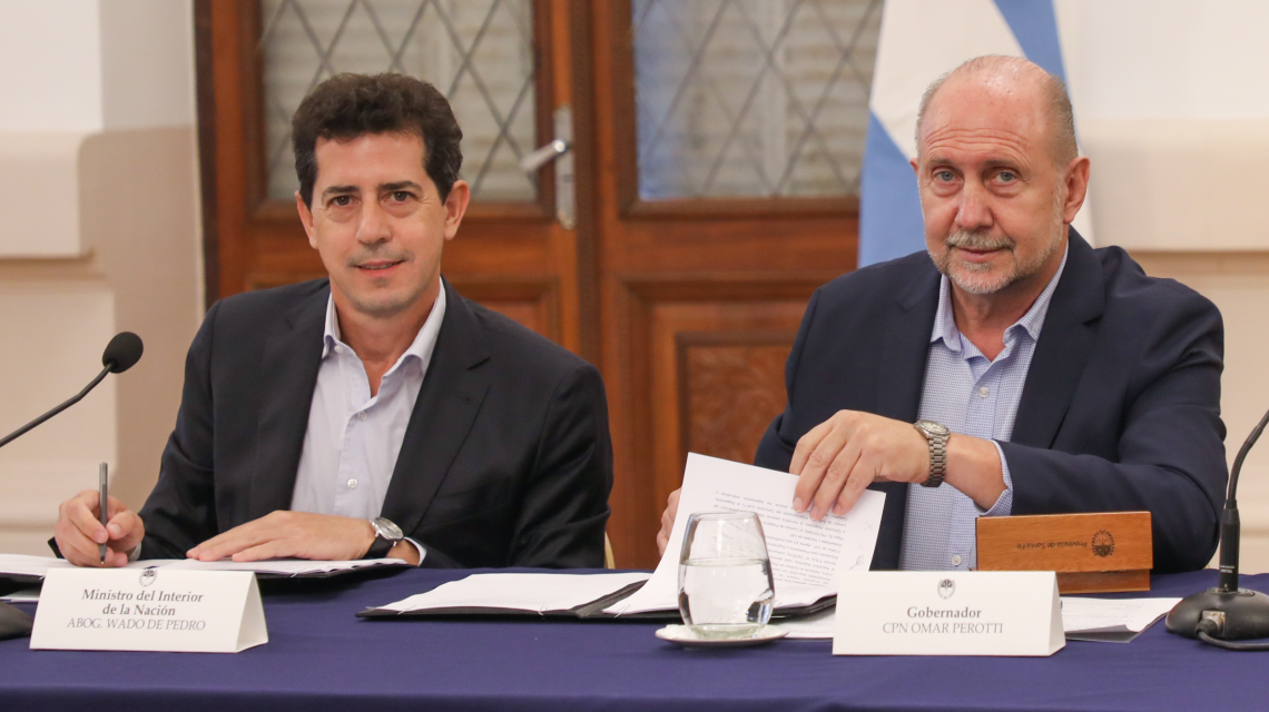 El gobernador Omar Perotti y el ministro del Interior, Wado de Pedro, firmaron este miércoles el convenio de Asistencia Financiera y Adhesión entre el Fondo Fiduciario Federal de Infraestructura Regional, para la ejecución de la readecuación de las obras de mitigación contra inundaciones y estabilización de las barrancas zona este de la ciudad de San Javier.