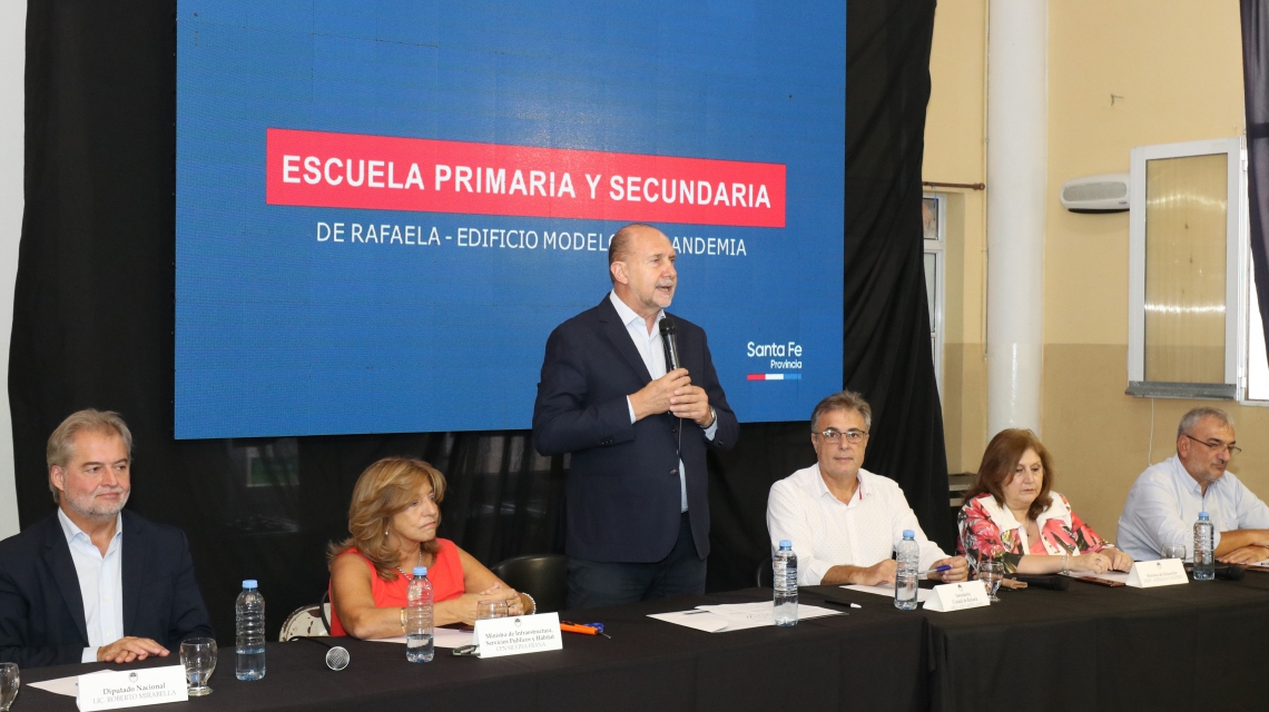 El gobernador Omar Perotti encabezó este lunes en Rafaela la apertura de sobres con las ofertas económicas para la construcción del edificio Modelo Pospandemia Escuela Primaria y Secundaria de esa ciudad, obra que cuenta con un presupuesto actualizado de 2.705.494.500,76 pesos y un plazo de ejecución de 240 días. La actividad se llevó a cabo en la intersección de David Mazzi y Destefani.