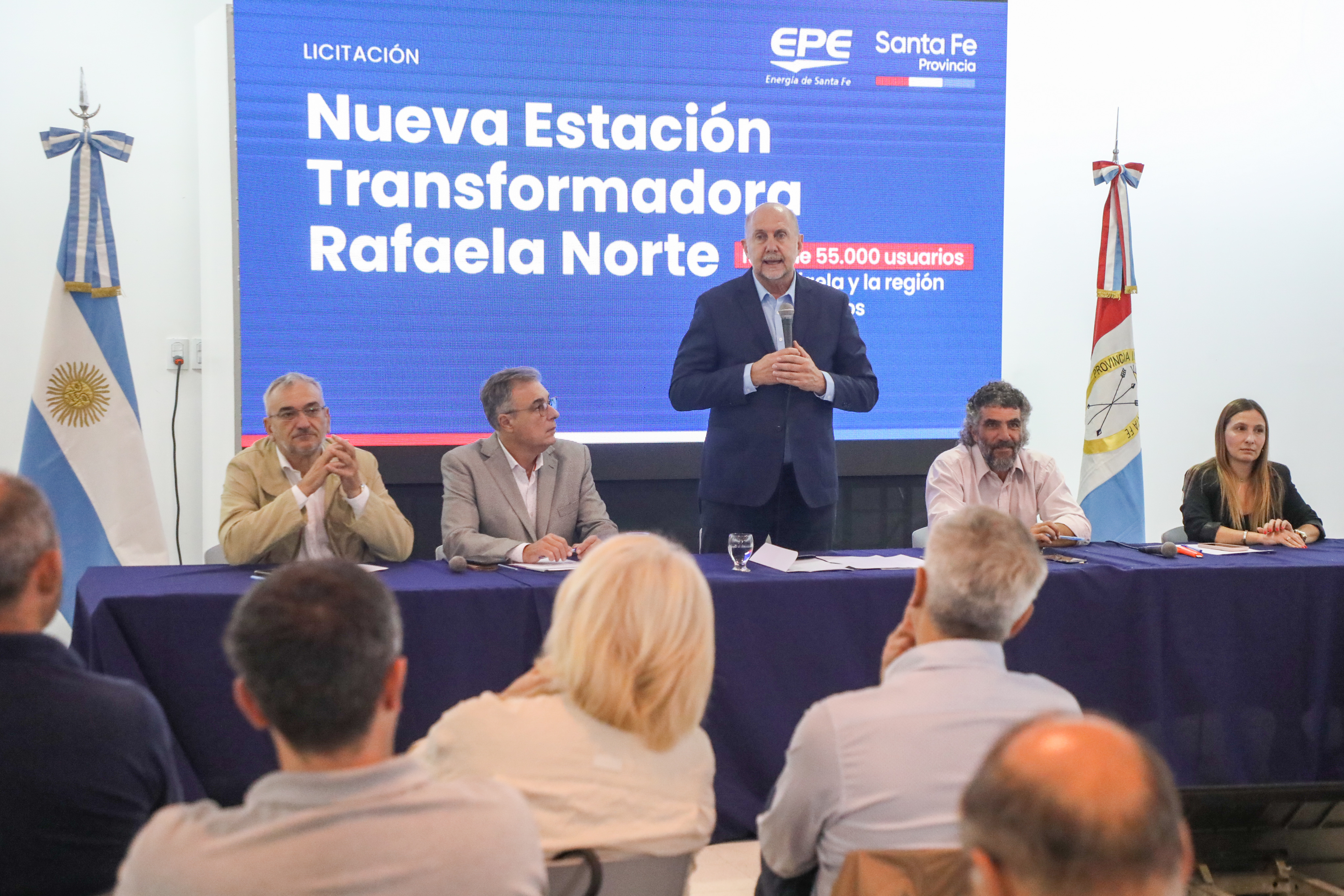 El gobernador Omar Perotti encabezó este miércoles el acto de apertura de ofertas para la ejecución de la estación transformadora 132/33/13,2 Kv Rafaela Norte, en un terreno propiedad de la Empresa Provincial de la Energía (EPE), y las vinculaciones eléctricas de media y alta tensión. La obra, que mejorará el sector energético y productivo de la ciudad y región, cuenta con un presupuesto que asciende a $ 5.951.348.576,01 centavos, con IVA incluido, a enero de 2023.