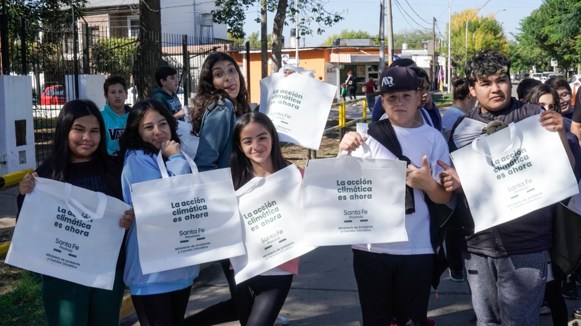 “Hicimos una actividad de educación ambiental con los chicos de séptimo grado de la Escuela Dr. Juan Álvarez de Capitán Bermúdez, donde, a través de la experiencia lúdica, buscamos que reconozcan acciones de la vida cotidiana que contribuyan a mitigar el cambio climático y aporten al cuidado del ambiente, como la movilidad activa y la separación de residuos”, expresó la subsecretaria de Economía Circular, Saida Caula.