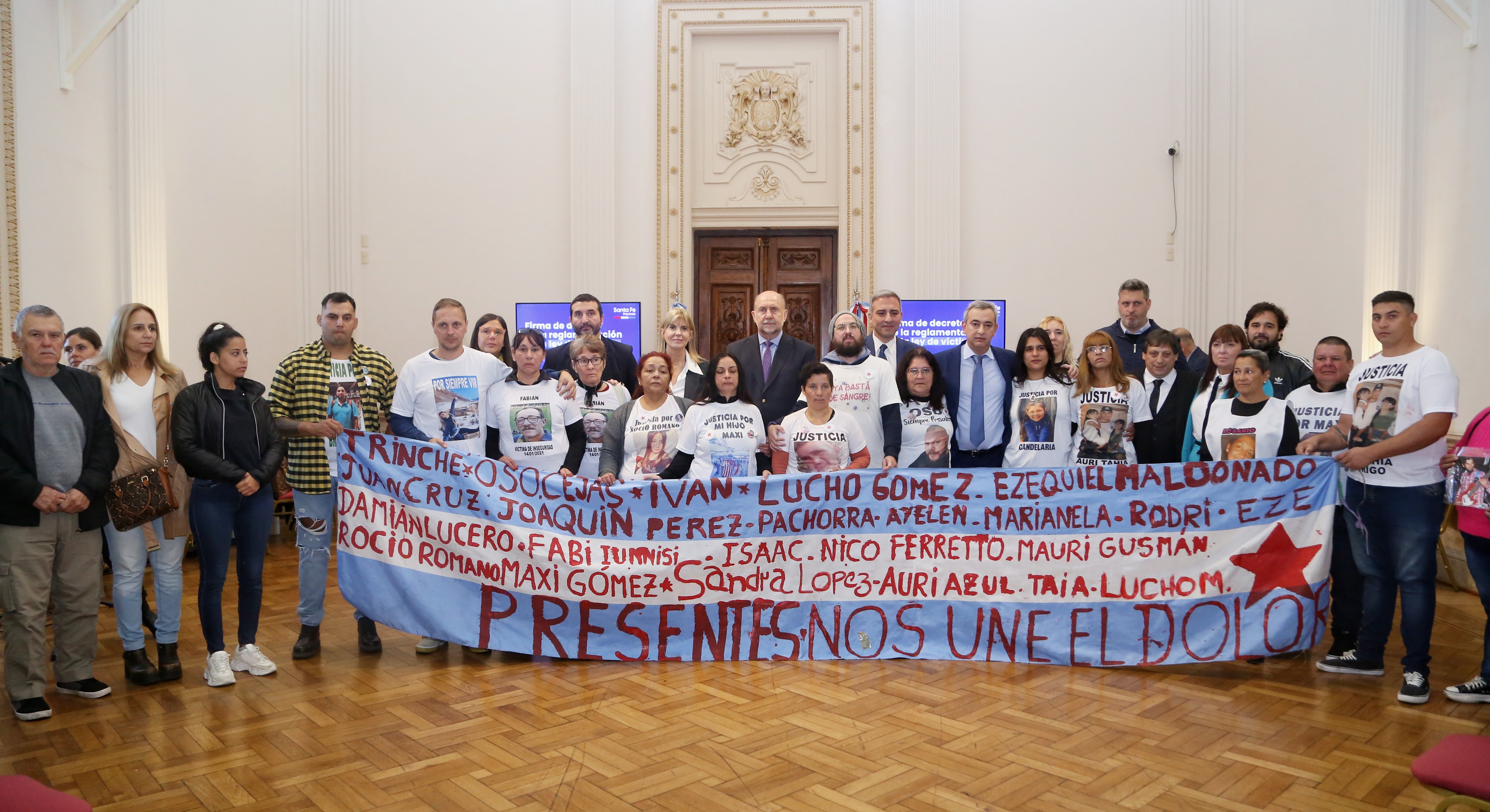 El gobernador Omar Perotti encabezó este miércoles, en el Salón Blanco de la sede del Gobierno de Rosario, la firma del decreto de reglamentación de la Ley de Derechos y Garantías de las Personas Víctimas de Delitos, en el marco del “Día Provincial del Familiar y la Víctima de Inseguridad”, en conmemoración del fallecimiento de Marianela Brondino, que ocurrió el 3 de mayo de 2010, como consecuencia de un acto delictivo en la ciudad de Santa Fe.