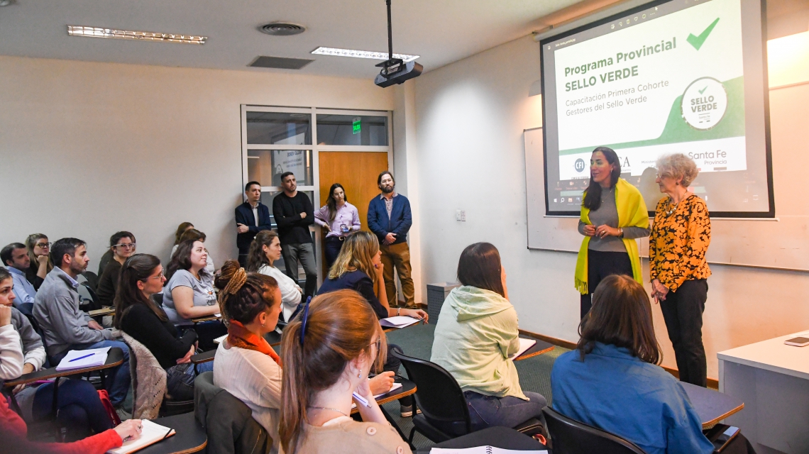 “Estamos continuando lo que empezamos semanas atrás, que tiene que ver con el Sello Verde del Gobierno de Santa Fe, formando 140 estudiantes y profesionales que serán los encargados de realizar diagnósticos de los aspectos de sustentabilidad y triple impacto en empresas que deseen adquirir esta nueva certificación”, comentó la ministra Erika Gonnet.