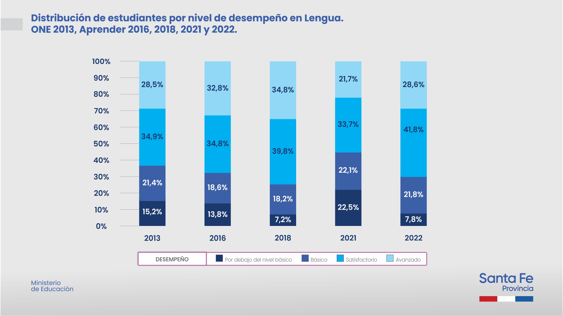 En este sentido, el ministro de Educación de Santa Fe, Víctor Debloc, manifestó que “la mejora integral de los indicadores de Lengua y Matemática en las pruebas de 6° grado está asociada a la asistencia presencial de los estudiantes, al recurso de los cuadernos pedagógicos, al apoyo de los libros de texto de matemática y lengua distribuidos para cada estudiante, maestras y maestros. También los textos y los talleres del Plan Nacional de Lectura, las capacitaciones presenciales y las virtuales mediante la plataforma. Por eso se han mejorado los procesos de lectura y escritura, como también los resultados de matemática”.
