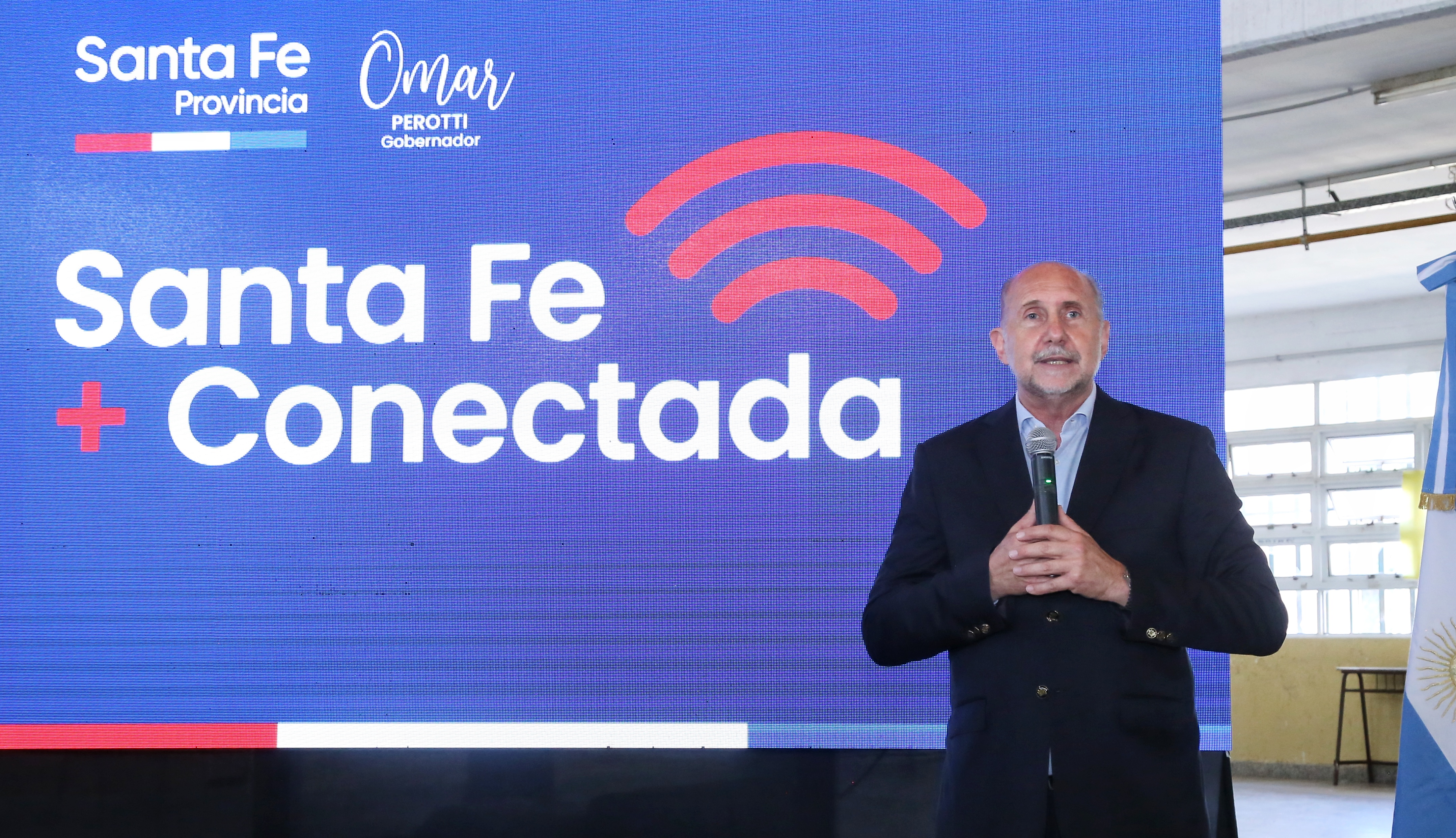 El gobernador de la provincia, Omar Perotti, encabezó este jueves en Rosario, el lanzamiento del Programa “Santa Fe + Conectada” en barrios populares. Con un acto en la Escuela de Enseñanza Técnica N°683, se puso en marcha el servicio de wifi libre que incorpora infraestructura tecnológica de calidad a jardines de infantes, escuelas primarias, secundarias y técnicas del sistema educativo provincial.