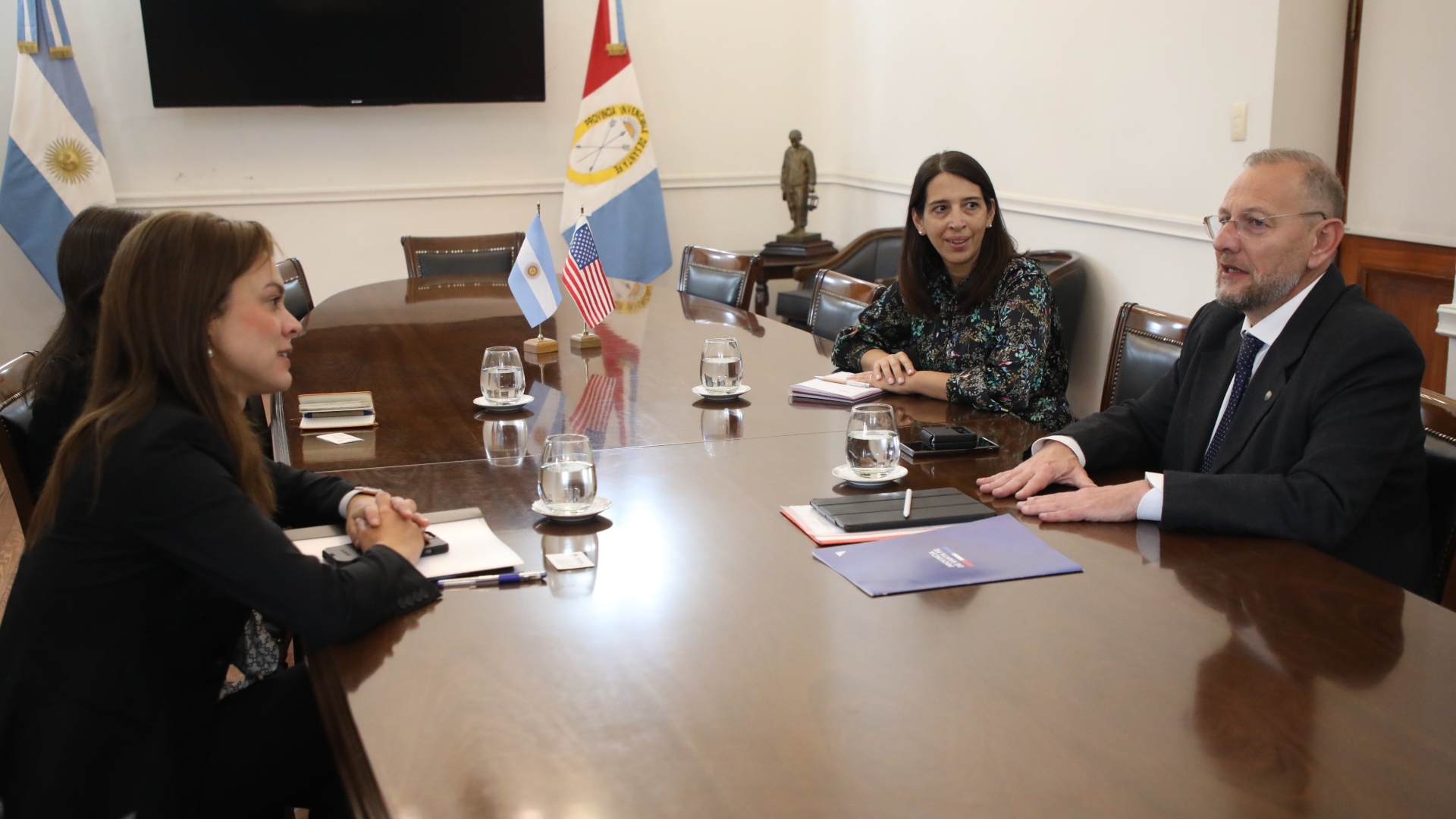 Por su parte, de San Félix dijo que “fue una reunión de trabajo mutuo, que venimos desarrollando desde el inicio de la gestión, en materias que tienen que ver con la cuestión cultural, con becarios que han participados en distintos programas en Estados Unidos; en justicia y seguridad, con programas de fortalecimiento a las instituciones provinciales, invitando a fuerzas federales, que es un trabajo muy fuerte y continúa con un foco en la ciudad de Rosario, donde llevamos más de 500 efectivos capacitados".
