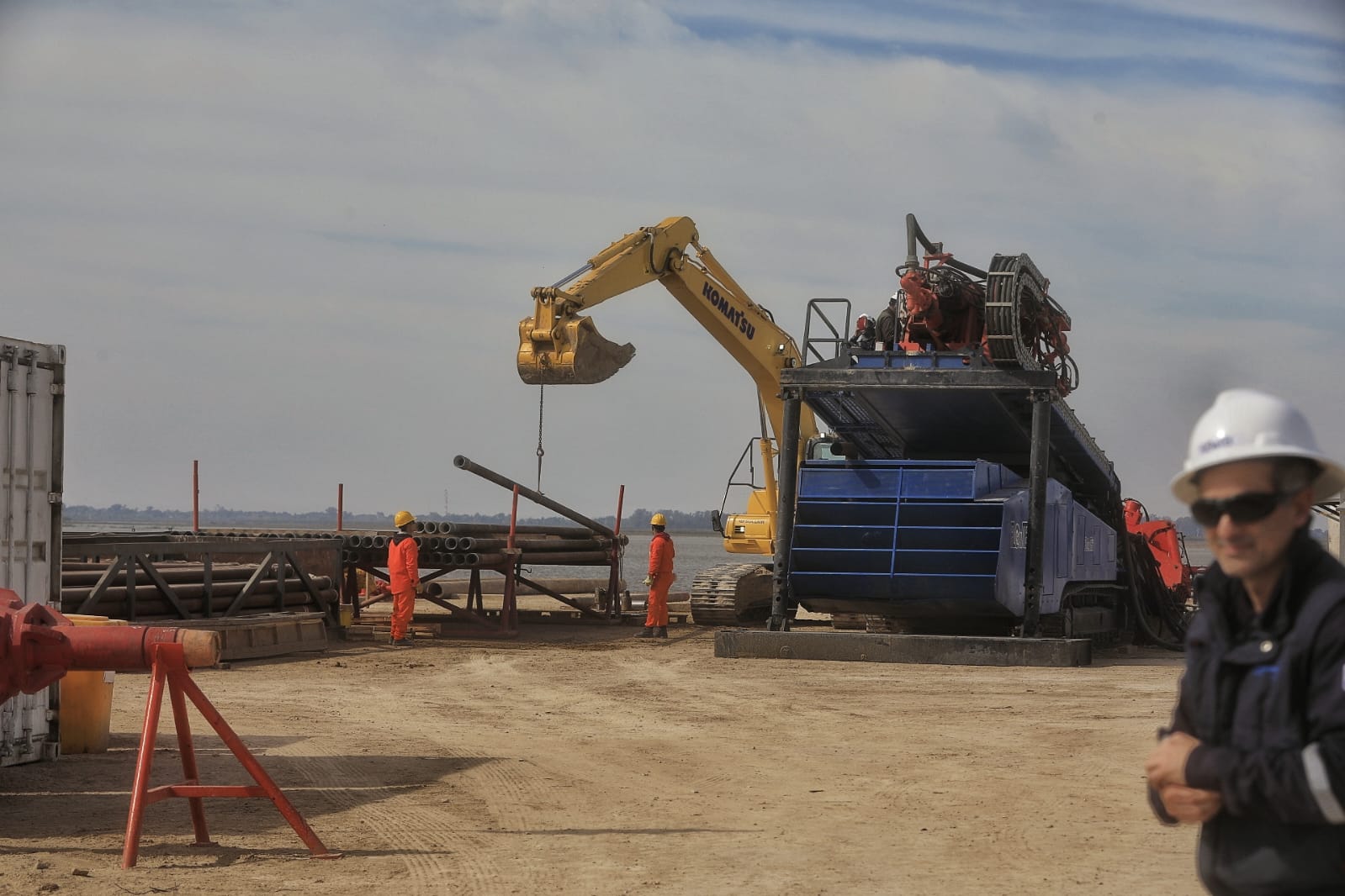 Por su parte, el gerente de Operaciones de la empresa a cargo del cruce, Andrés Gentilesco, explicó que “esta obra tiene perforación horizontal dirigida, que es un trabajo de geología complejo. Se baja aproximadamente entre 25 y 30 metros de profundidad, cruzamos todo el cauce de la laguna y volvemos ensanchando a un diámetro de 24 pulgadas y luego se hace la inserción de la cañería. El largo es 1.850 metros, lo cual tiene su complejidad por la longitud. Posteriormente del otro lado de la costa, la cañería será insertada en la perforación realizada por la mecha piloto, y al finalizar, el caño ya está listo para ser soldado al resto del gasoducto”.
