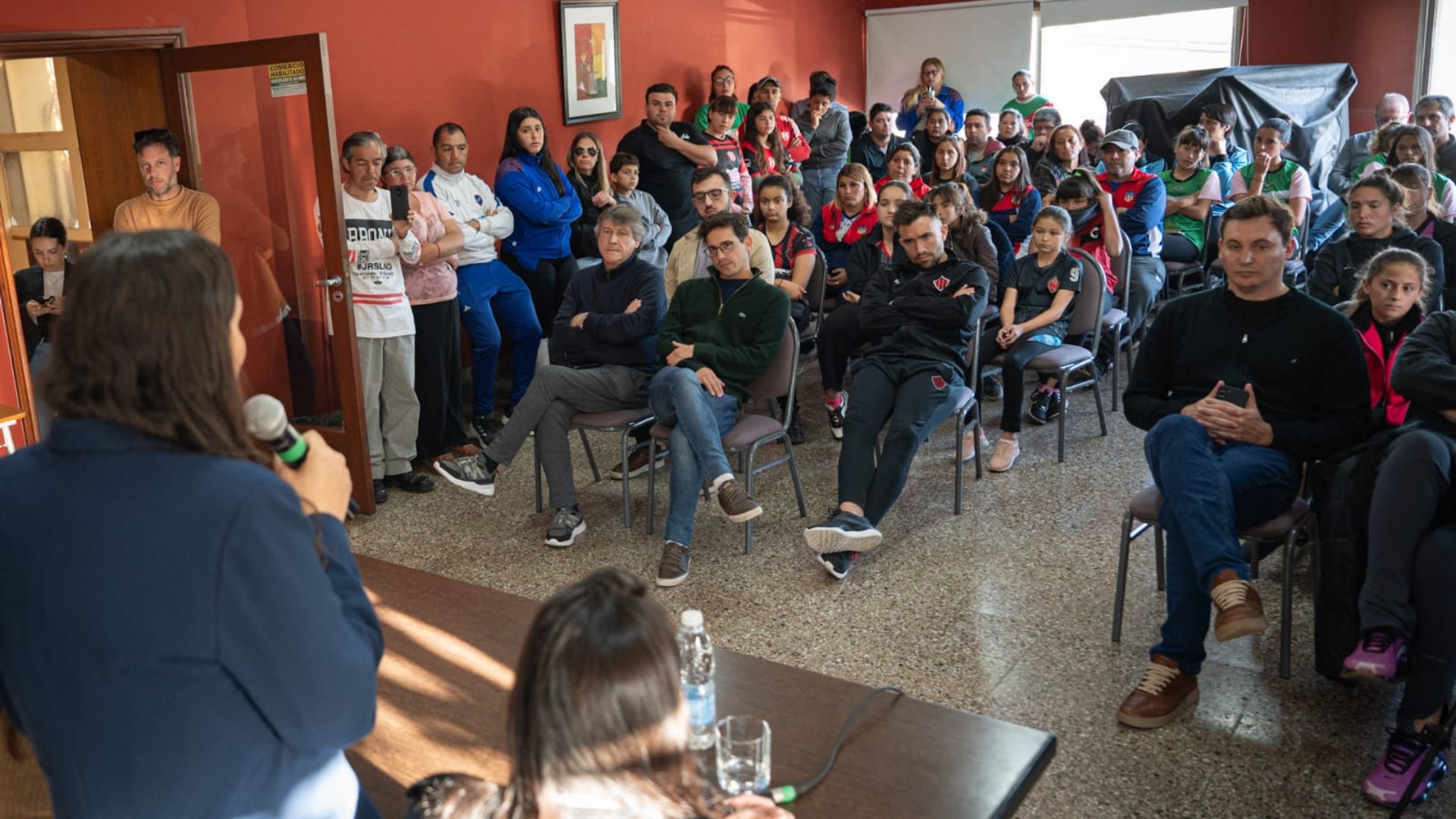 La entrega de kits se realizó en la Sala Moreno y fue encabezada por la ministra del área, María Florencia Marinaro; la senadora departamental, Cristina Berra; la secretaria de Ciencia, Tecnología e Innovación, Marina Baima; y representantes y jugadoras de clubes locales.