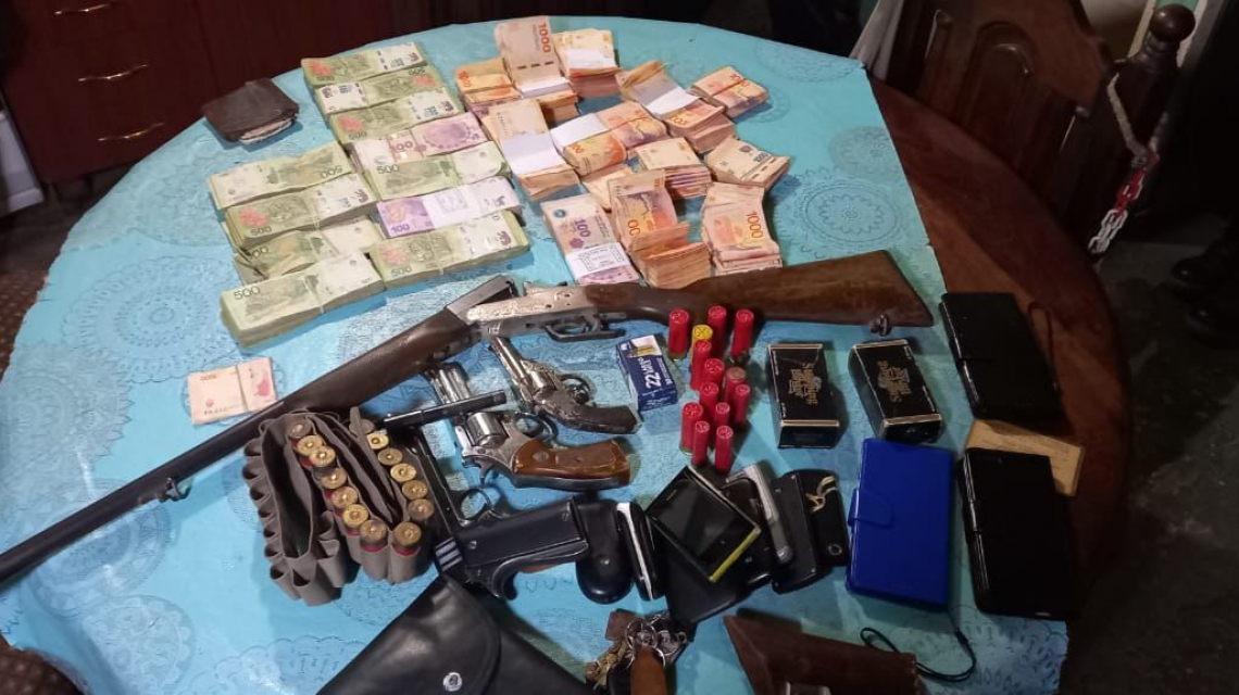Asimismo, en otro inmueble allanado secuestraron distintas armas de fuego: una escopeta calibre 16, una pistola calibre 22, un revólver calibre 32 largo, un revólver calibre 32 corto, cartuchos de distintos calibres, nueve teléfonos celulares y una suma cercana al 1,5 millón de pesos en efectivo.