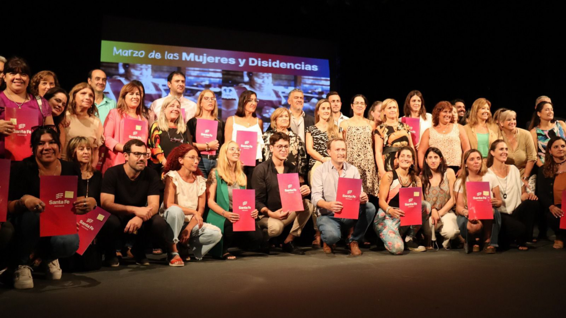 El Gobierno de la Provincia de Santa Fe, a través de la Secretaría de Mujeres, Género y Diversidad del Ministerio de Igualdad y Desarrollo Humano, rubricó convenios correspondientes a 100 proyectos, enmarcados en la convocatoria “Marzo de las Mujeres y Disidencias”. La actividad se llevó a cabo en el Centro Cultural Provincial Francisco Paco Urondo de la ciudad de Santa Fe, con la presencia la secretaria de Mujeres, Género y Diversidad, Alicia Tate, representantes de organizaciones sociales, universidades y gobiernos locales de la provincia.