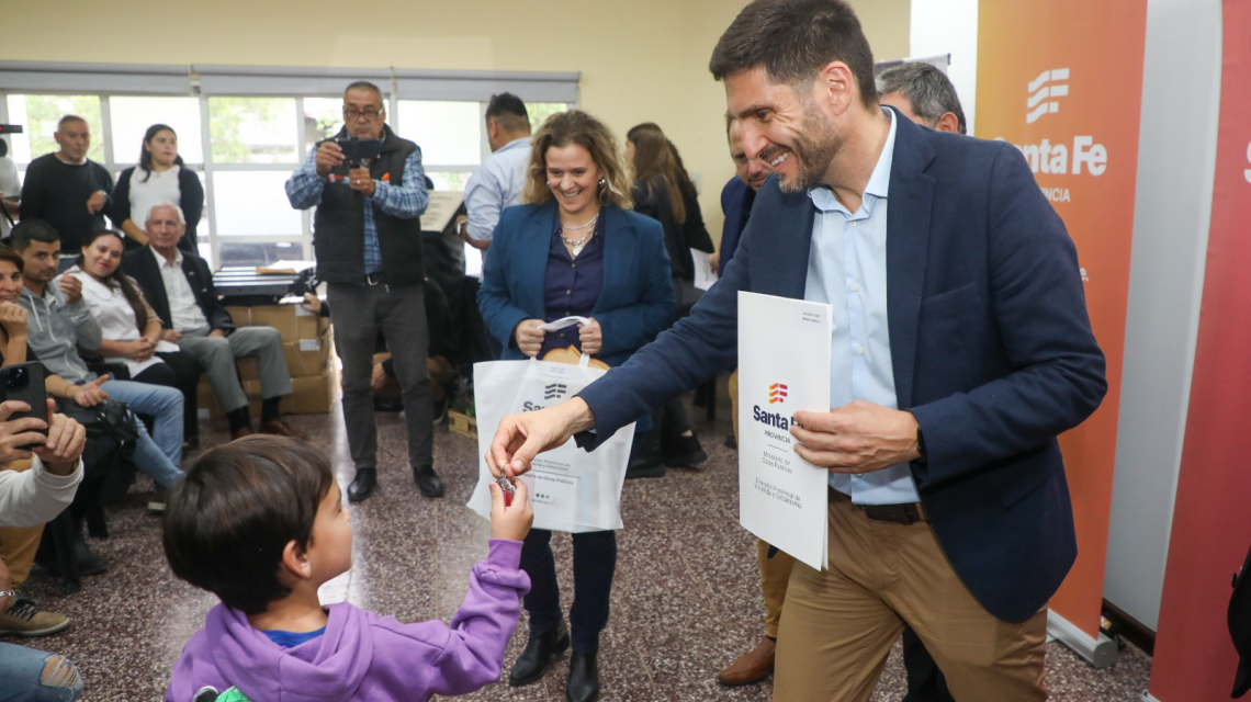 El gobernador Maximiliano Pullaro entregó este martes 13 viviendas a familias de la comuna de Arrufó, en el departamento San Cristóbal. Además, en el acto desarrollado en el Multiespacio comunal, recibieron aportes Bibliotecas Populares de Suardi, San Guillermo, Colonia Rosa, Villa Trinidad, Arrufó, Hersilia, Ceres y Moises Ville, para la adquisición de libros en la “Feria Internacional del Libro”; y el Club Unión Arrufó, seis reflectores led para la iluminación del campo de deportes.