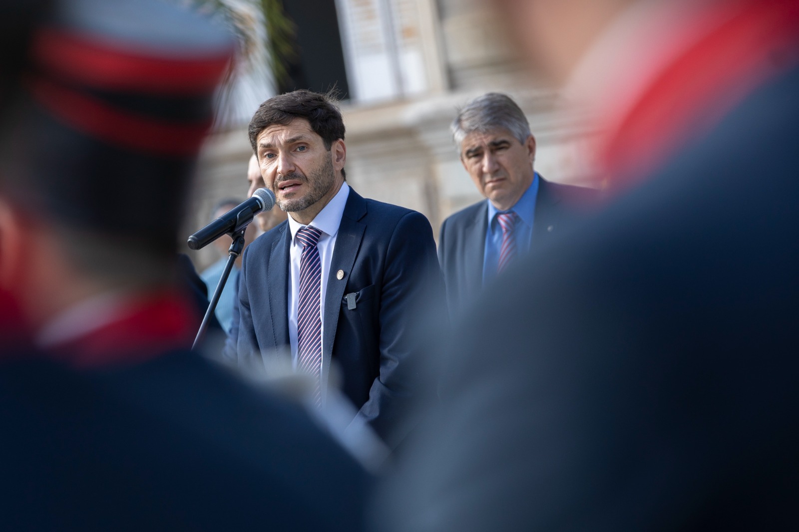 “Quiero destacar la labor que ustedes tuvieron, no en defensa de un edificio público ni de los legisladores que estaban allí sesionando como representantes del pueblo, sino en defensa de las instituciones democráticas de la República Argentina”, dijo el gobernador.