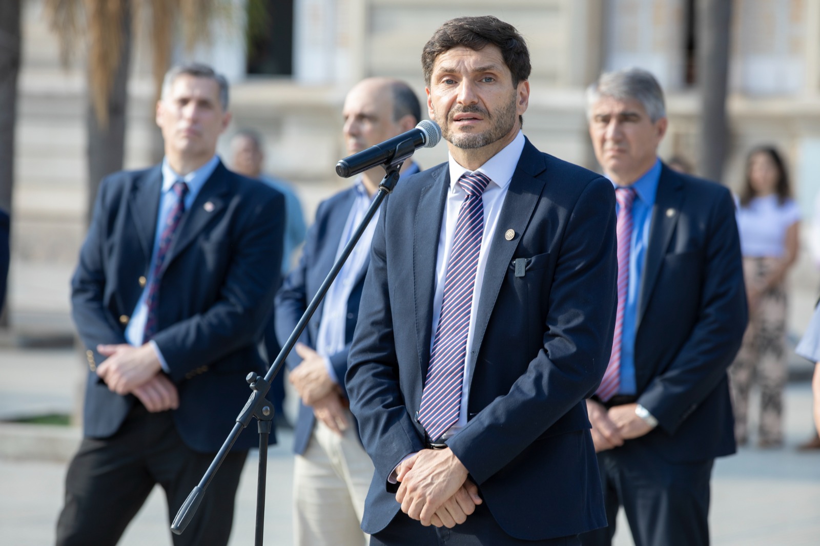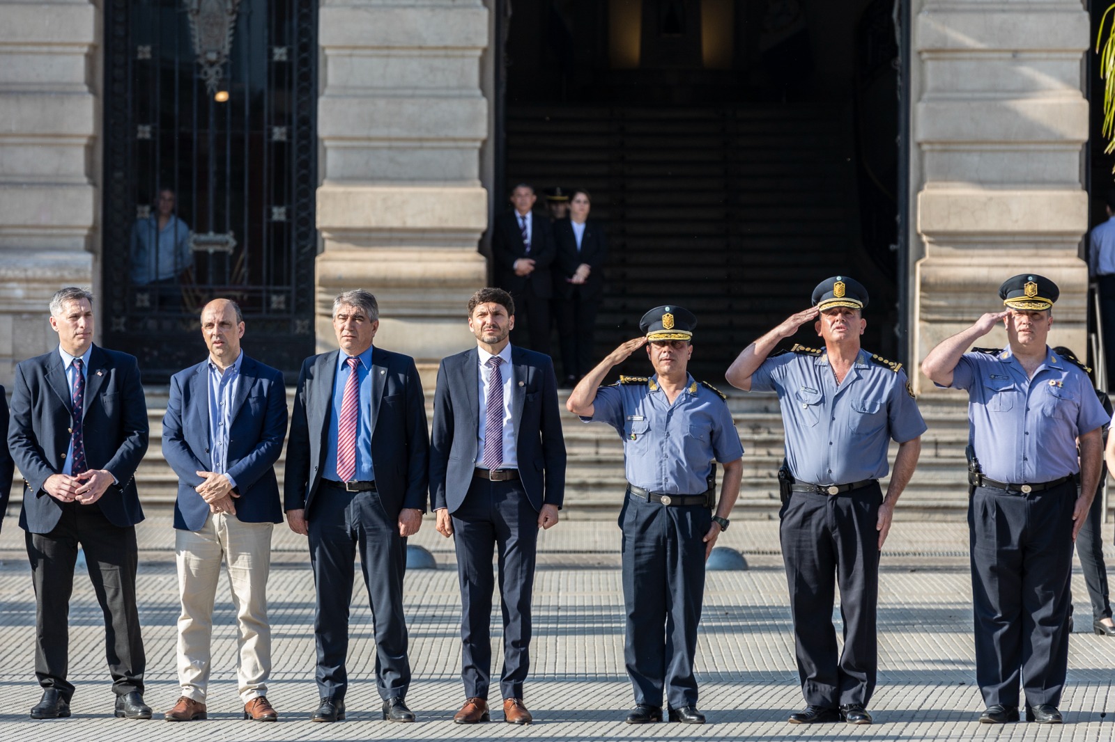 Del acto participaron también los ministros de Gobierno e Innovación Pública, Fabián Bastía, y de Economía, Pablo Olivares; el vicepresidente 1° de la Cámara de Diputados de la Provincia, José Corral; el jefe de Policía de la Provincia, Luis Maldonado; el subjefe de Policía, Daniel Filchel; y la jefa de la Unidad Regional 1, Margarita Romero, junto con demás autoridades provinciales, jefes de las fuerzas de seguridad, personal de la Unidad Especial Policial Casa de Gobierno e invitados especiales.
