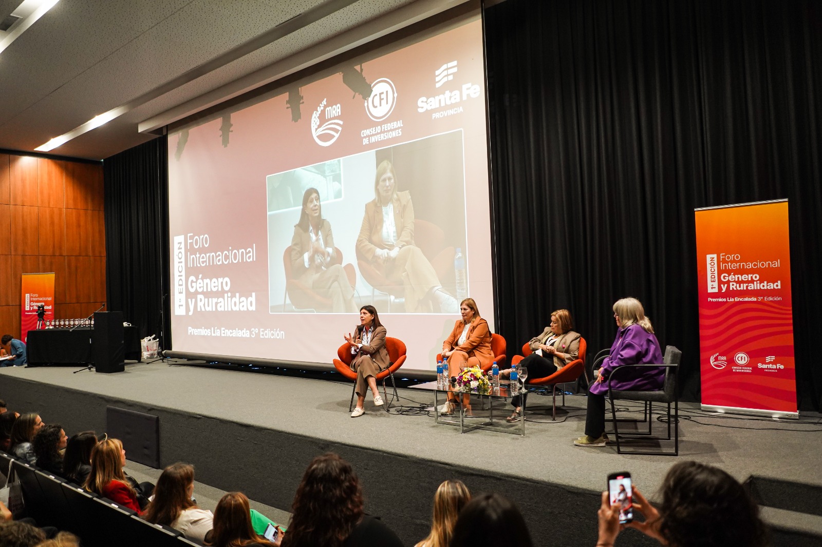 Posteriormente, en el panel internacional “Mujeres Rurales Organizadas”, participaron Andrea Sarnari, presidenta de la Federación Agraria Argentina; Paulina Carrasco (Chile), presidenta de la Asociación de Productores de Leche de la Región de Los Ríos; y Simone Silotti (Brasil), fundadora de la ONG “Haz un Bien Increíble” de Sao Paulo.