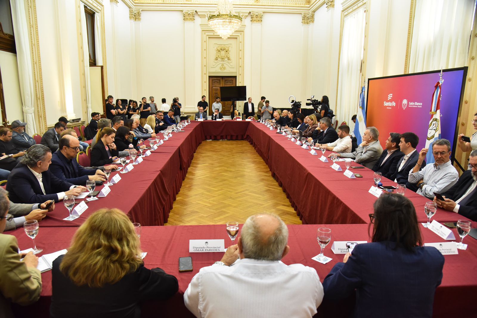 Del encuentro participaron la vicegobernadora Gisela Scaglia; los ministros de Gobierno e Innovación Pública, Fabián Bastia, y de Justicia y Seguridad, Pablo Cococcioni; el secretario General de Gobernación, Juan Cruz Candido; los secretarios de Coordinación Técnica y Administración Financiera, Georgina Orciani; de Asuntos Penales, Lucía Masneri; de Gestión Institucional, Virginia Coudannes; de Seguridad Pública, Omar Pereira; y de Justicia, Santiago Mascheroni; y demás integrantes del gabinete provincial.
