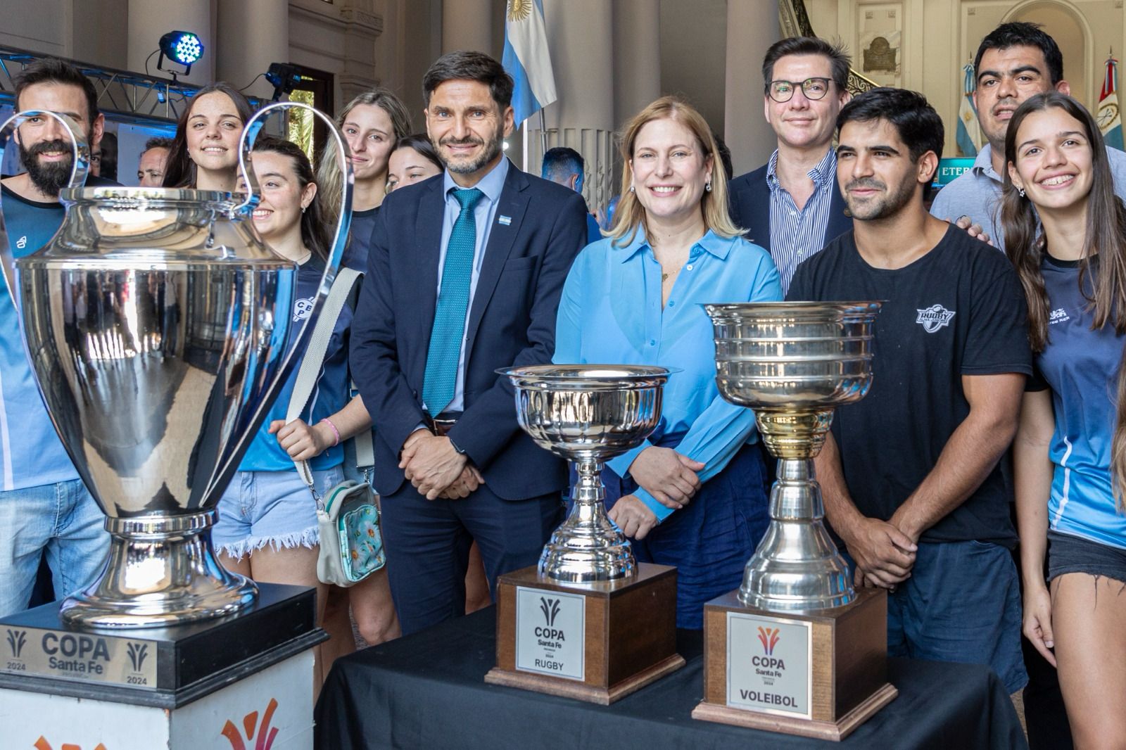 Vale destacar que junto a los trofeos obtenidos por la “albiceleste”, también se expone la Copa Santa Fe, competencia organizada por el Gobierno de la Provincia en diferentes deportes y en ambas ramas. Es por eso que durante la jornada de este viernes estuvieron presentes algunos de los integrantes de los planteles campeones de la edición 2024, entre ellos los futbolistas del Club Juventud de Esperanza y las jugadoras de vóley de Banco Provincial de la ciudad capital. “Tenemos también la Copa Santa Fe de Fútbol que finalizó el mes pasado y este fin de semana estamos en la definición de la copa en rugby y el triatlón acá en la ciudad de Santa Fe”, apuntó Di Lena.
