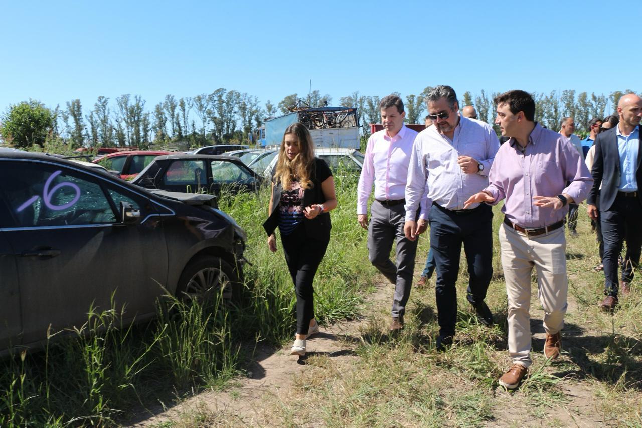 El ministro de Justicia y Seguridad, Pablo Cococcioni, y el secretario de Gestión de Registros Provinciales, Matías Figueroa Escauriza, supervisaron el inicio del proceso de compactación de vehículos incautados y en desuso que se llevó a cabo este viernes en el depósito judicial ubicado en el departamento San Lorenzo, en el cruce de rutas 34 y A012, en donde había más de 2.000 motocicletas y 500 autos.