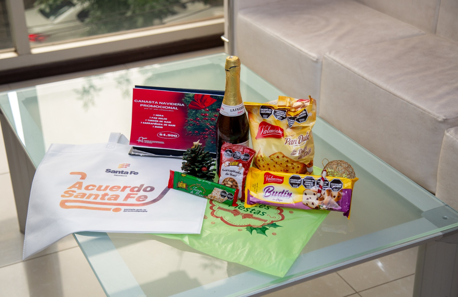 En cuanto a la canasta navideña que estará en la góndola a partir de hoy, el funcionario indicó que “será hasta agotar stock y pensamos que se extenderá hasta fin de año. Es una iniciativa de la Cámara de Supermercados a la cual nosotros nos sumamos. Los cinco elementos que contendrá la canasta son sidra, pan dulce, turrón, garrapiñada y budín, más la bolsa de Acuerdo Santa Fe”.