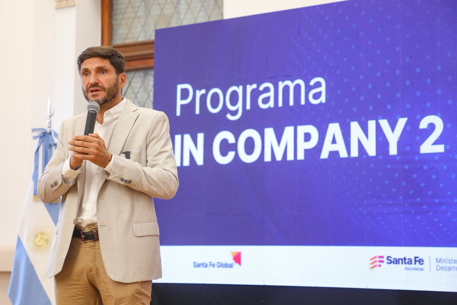 El gobernador Maximiliano Pullaro presentó este miércoles “In Company 2”, la segunda instancia de una iniciativa que busca apoyar a las pymes en la construcción de sus capacidades para la internacionalización, propiciando la exportación de sus productos. Durante el acto desarrollado en el Salón Blanco de Casa de Gobierno, se firmaron convenios con empresarios y asesores técnicos, y se ofreció un balance de la primera convocatoria, realizada en 2024.