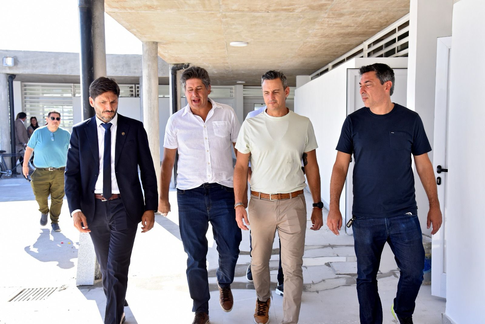 El gobernador Maximiliano Pullaro y el ministro de Educación, José Goity, en el marco de la implementación de un Plan Educativo Integral para la ciudad de Funes, recorrió el nuevo edificio de la escuela primaria N° 1397. También estuvieron presentes el senador provincial por el departamento Rosario, Ciro Seisas; la secretaria del Ministerio de Educación, María Martín; y el intendente de esa ciudad, Rolvider “Roly” Santacroce.