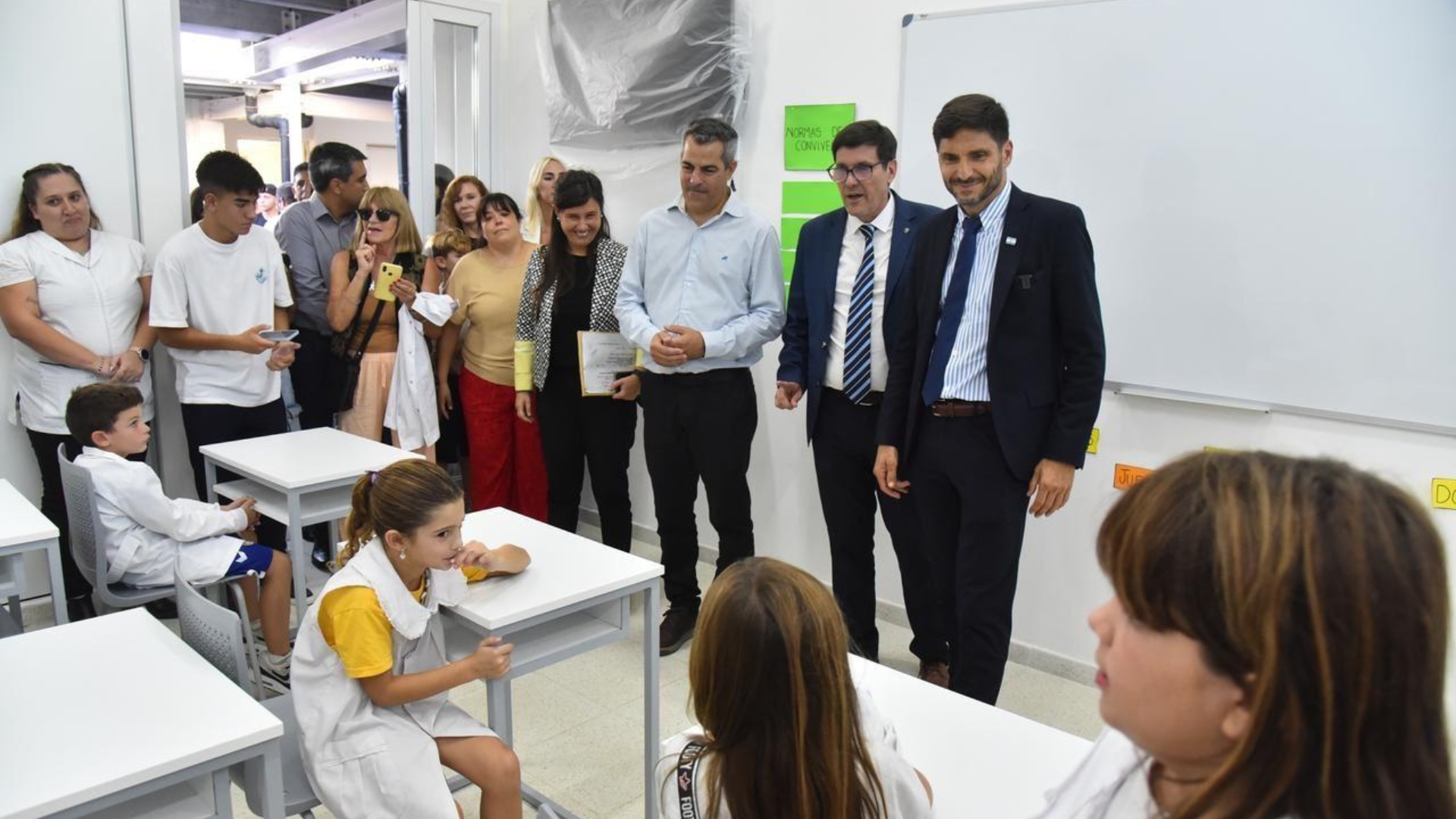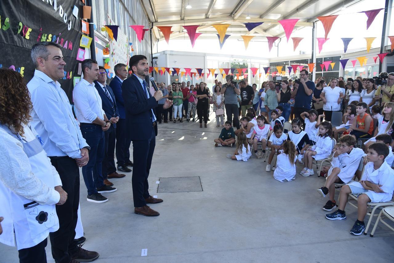 “Hoy no es un día menor; estamos inaugurando otra escuela en la provincia de Santa Fe. Y así lo seguiremos haciendo los próximos dos años y ocho meses que me quedan de mandato. Como llevamos adelante el Plan 1.000 aulas, con 350 construidas solo el primer año de nuestro gobierno. Como llevamos ya 1.800 edificios escolares reparados en la provincia de Santa Fe. Y vamos a invertir más recursos para que los establecimientos estén en condiciones para una mejor calidad educativa”, finalizó Pullaro.