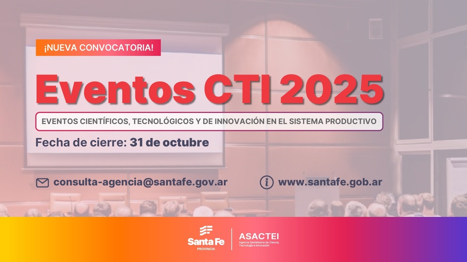 El Gobierno de Santa Fe, a través de la Agencia Santafesina de Ciencia, Tecnología e Innovación, abrió la convocatoria “Eventos Científicos, Tecnológicos y de Innovación en el Sistema Productivo 2025”.