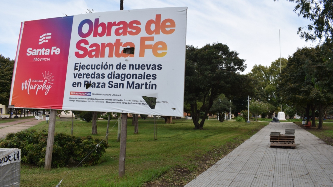 Además, el gobierno provincial financia el reemplazo y renovación de gran parte de las veredas internas de la Plaza San Martín, uno de los espacios públicos más emblemáticos de Murphy y donde se concentran muchísimas actividades recreativas y culturales. Para estos trabajos, también financiados a través del POU, la provincia destinó $77.778.889,00.